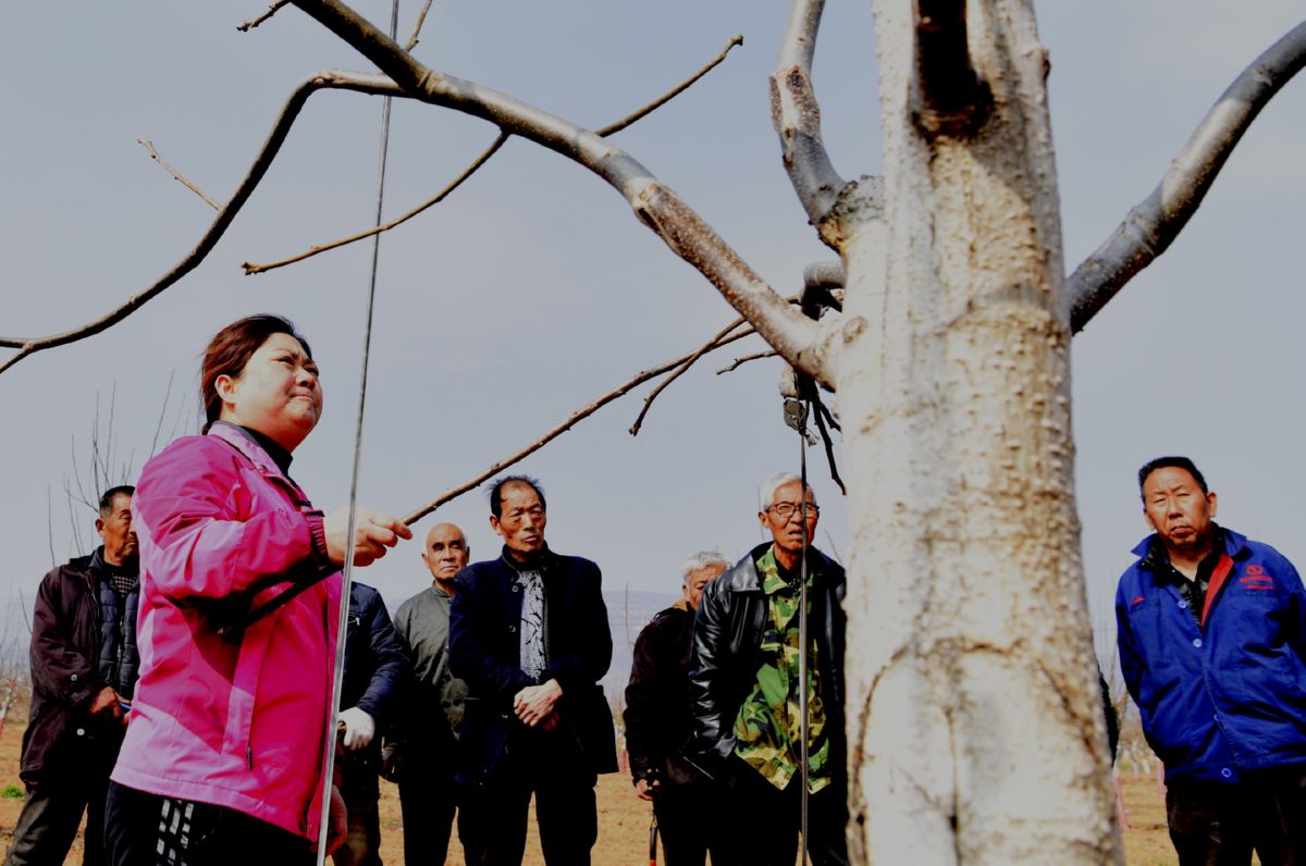 3月6日,垣曲县华峰乡林业专家柴小亚给果农传授春管技术。 特约摄影 崔松良 摄