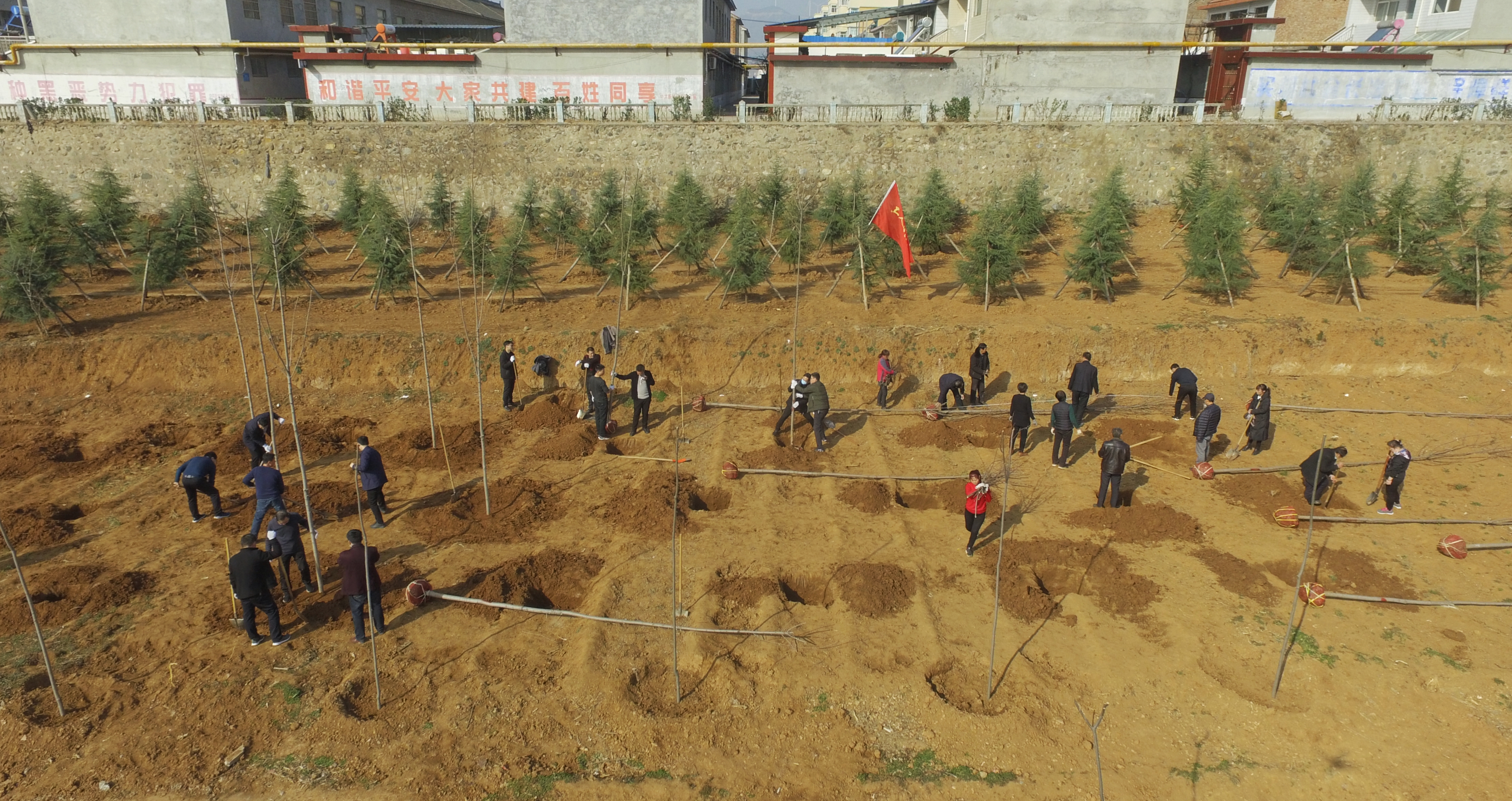 3月7日,垣曲数十名劳模在义务植树。
