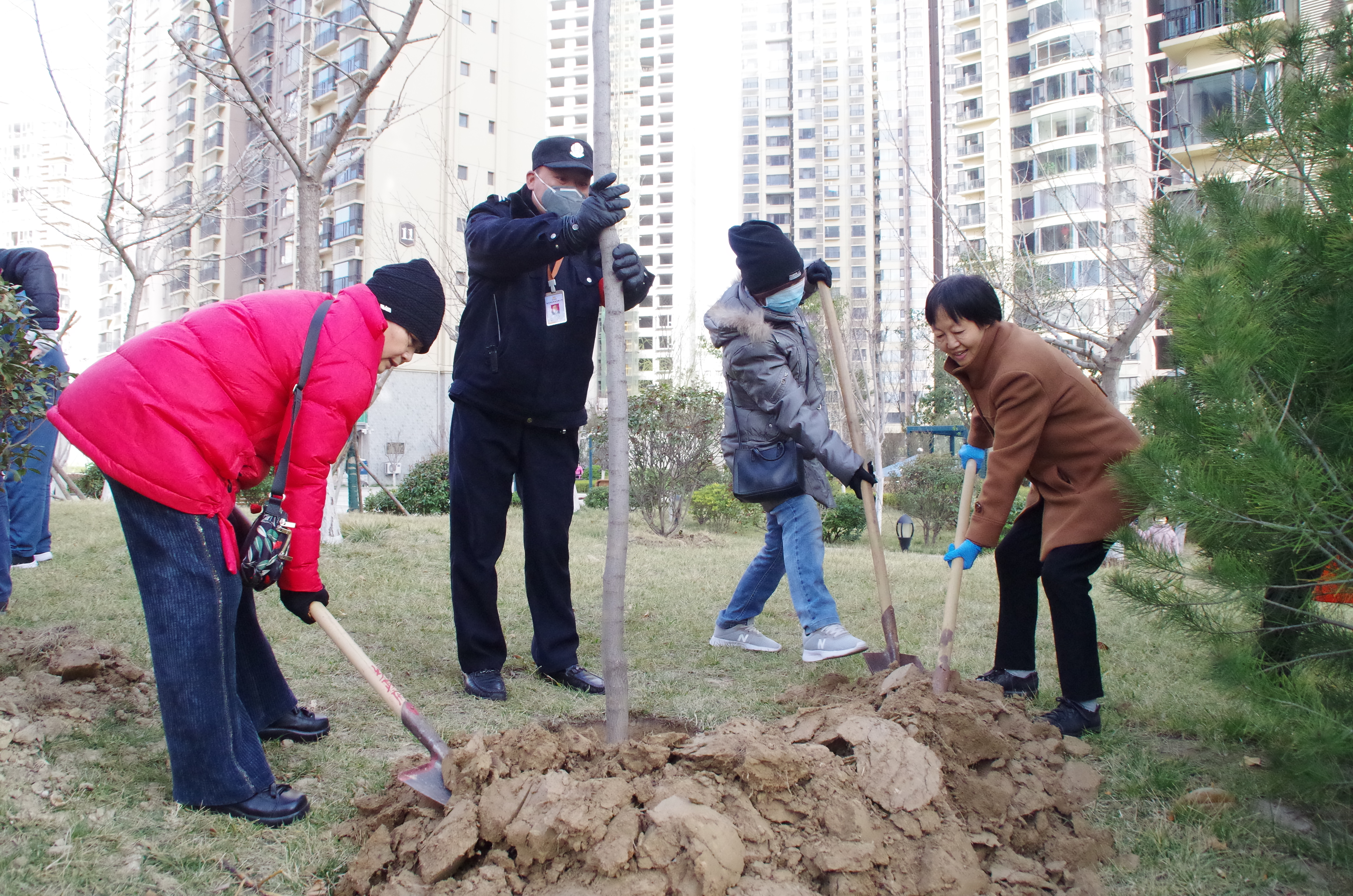 当天上午9时许,在水岸华庭·东郡小区内,业主在领取了树苗和工具后,有序地加入了植树活动的行列中。他们手持铁锹、填土、压实,分工明确,将一棵棵充满生机和希望的树苗植入土壤,为创建和谐美丽的小区贡献一份力量。