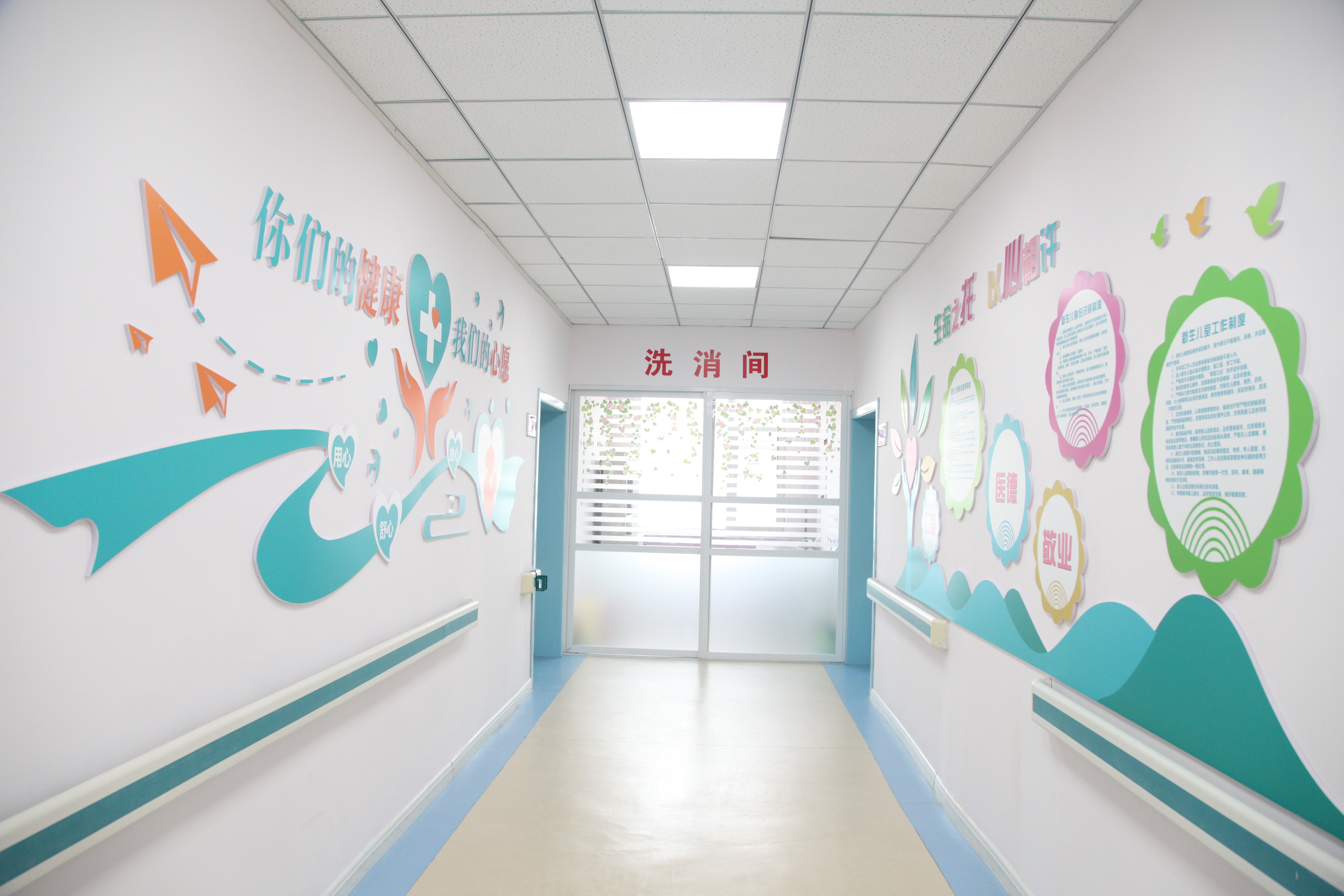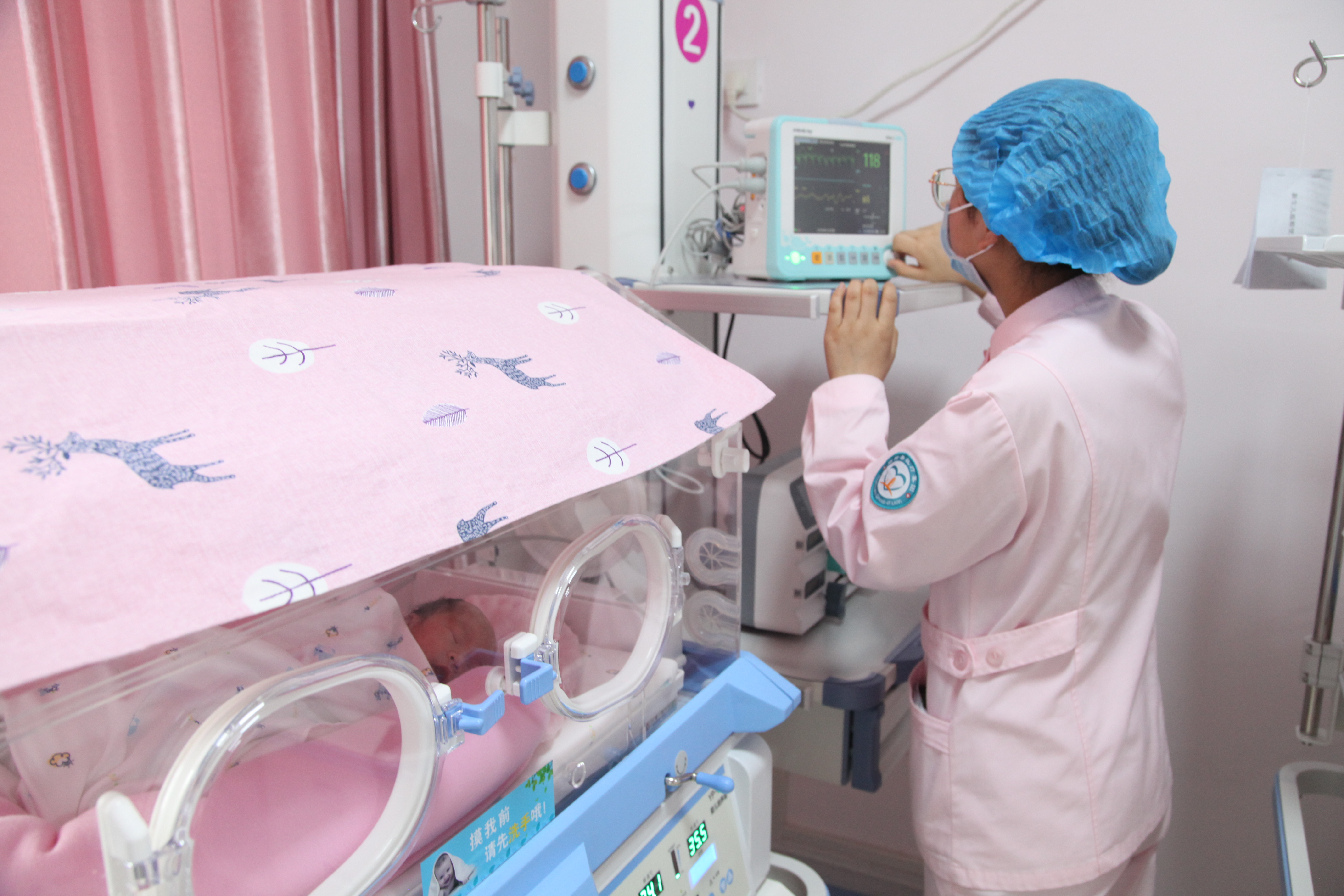 据了解,该中心目前开设固定床位27张,其中新生儿重症监护室(NICU)病床8张,新生儿病床10张,感染病床7张,隔离病房2张;医护人员共19人,其中医生9人,专职护士11人。新生儿病区设有接诊室、配奶间、治疗室、NICU、新生儿室、感染病房、隔离室、洗消间等;室内配有中心供氧、空气压缩、中心吸引器及空气消毒机;同时病房内还配备有先进的急救与监护设备,拥有新生儿辐射式抢救台、新生儿(早产儿)培育箱、移动式蓝光黄疸治疗仪、微量注射泵、经皮黄疸检测仪、血糖检测仪、高压泵雾化器、生命体征监护仪、进口有创呼吸机、无创呼吸机,脉搏、血氧饱和度检测仪等国内领先的设备。病房设置人性化,内部布置温馨,为宝宝们营造了舒适的就医环境。为了防止新生儿交叉感染,医院有严格的消毒隔离制度,医护人员每次接触患儿前后都会进行洗手、手消毒。