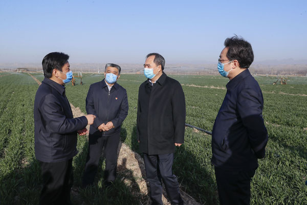 王成先后到芮城县陌南镇小麦高质量生产示范区、大禹渡一级站、县集约化育苗中心,查看了解冬小麦田间管理、集约化育苗、春耕春播、春浇灌溉等情况。他指出,要坚持疫情防控和春耕生产两手抓、两不误,坚持稳粮稳产不动摇,因苗因墒分类指导,搞好技术服务,科学水肥管理,紧盯防旱防冻防病虫,加强防灾减灾,确保夏粮丰收。