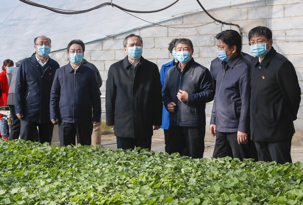 王成在芮城县集约化育苗中心调研。记者 闫鑫 摄