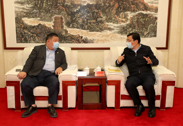 丁小强、朱鹏代表市委、市政府对李蓟一行来运表示欢迎。丁小强说,运城地处晋陕豫黄河金三角区域中心,区位优越,交通发达,文化积淀深厚,发展潜力巨大,市场前景广阔。当前,我市正深入贯彻习近平总书记“三篇光辉文献”和对山西工作的重要指示精神,积极贯彻新发展理念,打造黄河流域生态保护和高质量发展示范区,高品质推进城市建设,加快高质量转型发展,这些为双方合作共赢带来新的契机。绿地集团作为世界500强企业,拥有雄厚的资金实力和丰富的建设经验,希望绿地集团抓住机遇,布局城际空间站、全球商品贸易港、高铁商务区等新兴产业形态,建设精品项目,以新的引爆点引领城市建设,助力运城中心城市品质提升、实现高质量发展。朱鹏表示,绿地集团在运城布局产业项目是双方良好合作的开局,市政府将营造“六最”营商环境,全力支持项目进展,希望绿地集团发挥人才、资金、管理优势,加快合作进程,推动项目尽快落地,打造高端示范引领城建项目。