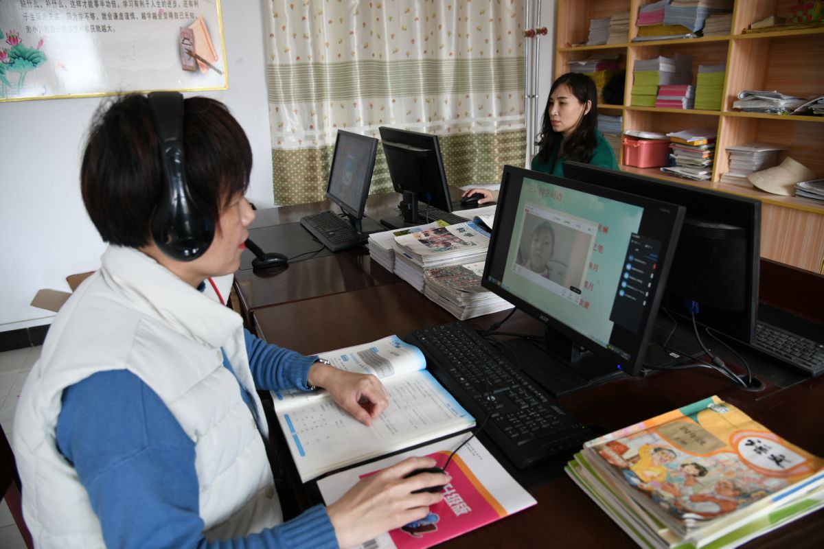 3月10日,闻喜县东街实验小学教师正在上网课。该校的线上课程采用参考名师的录播课+钉钉直播+教师在线指导学习的模式开展教学工作,为确保上好在线课程,全体教师协同合作、贡献智慧,为学生们设置了特殊时期的别样课程,使网上教学交流效果明显。 温 拓 摄