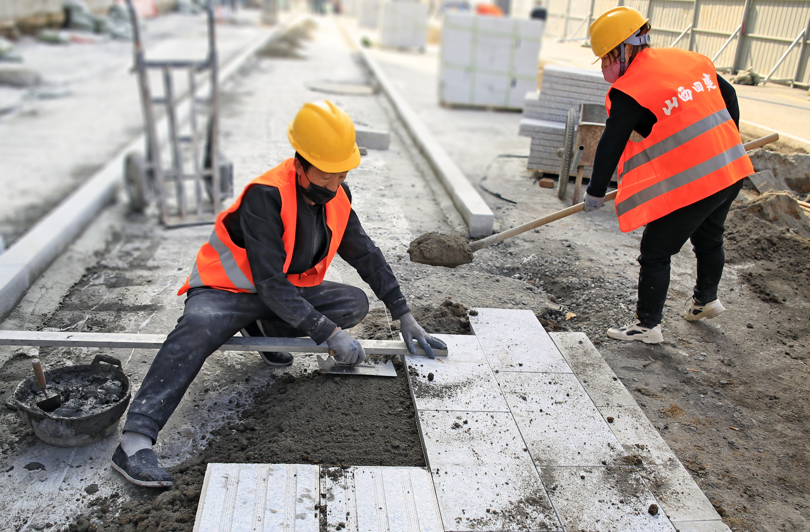 近日,工人在中心城区解放路道路改造工程项目现场加紧施工。 据了解,由市住建局实施的市政重点续建项目目前已全部复工,各施工单位均在严格做好疫情防控的同时,加大施工力度,确保项目如期完工。