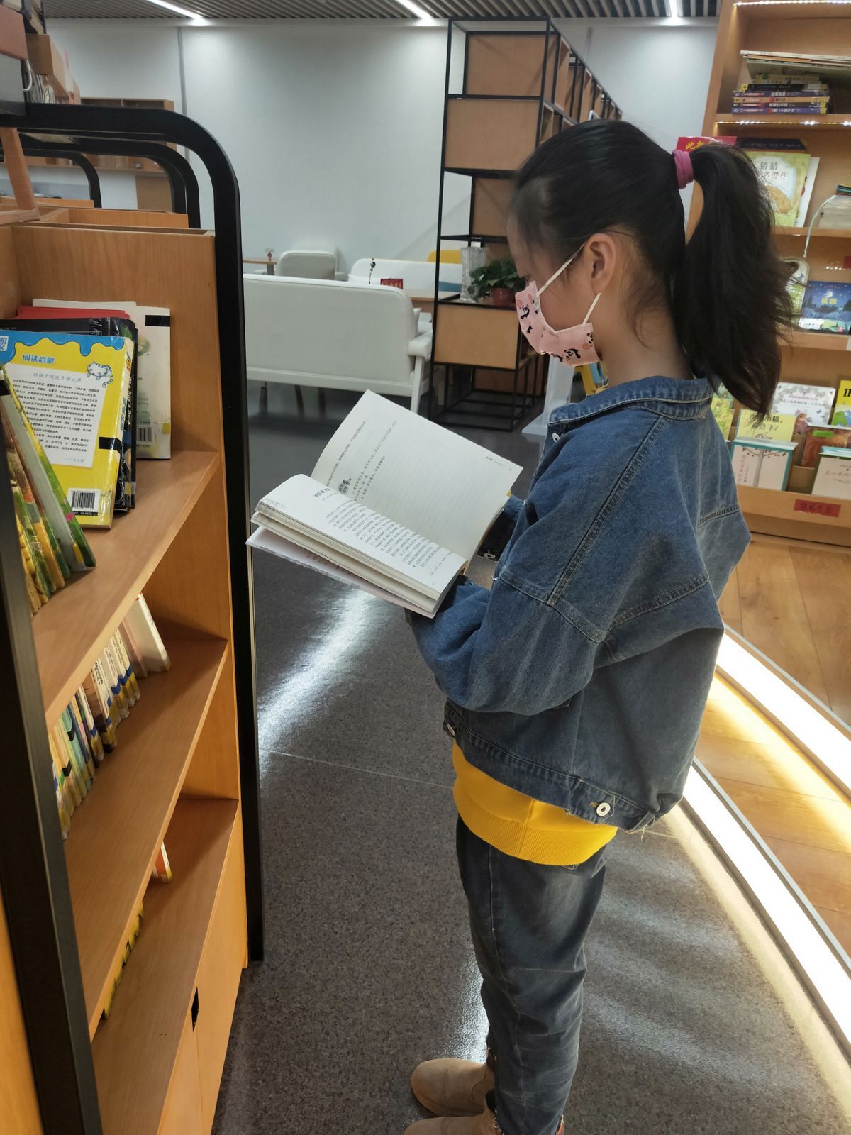 ▲3月16日下午,一名学生在市区的喜阅书吧挑选图书借阅。