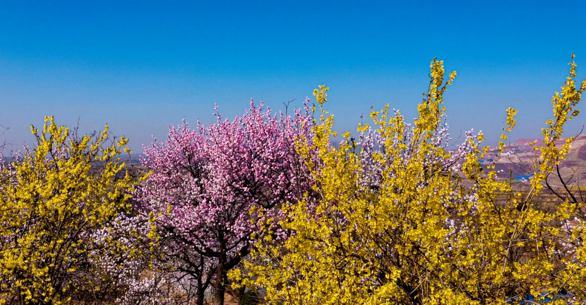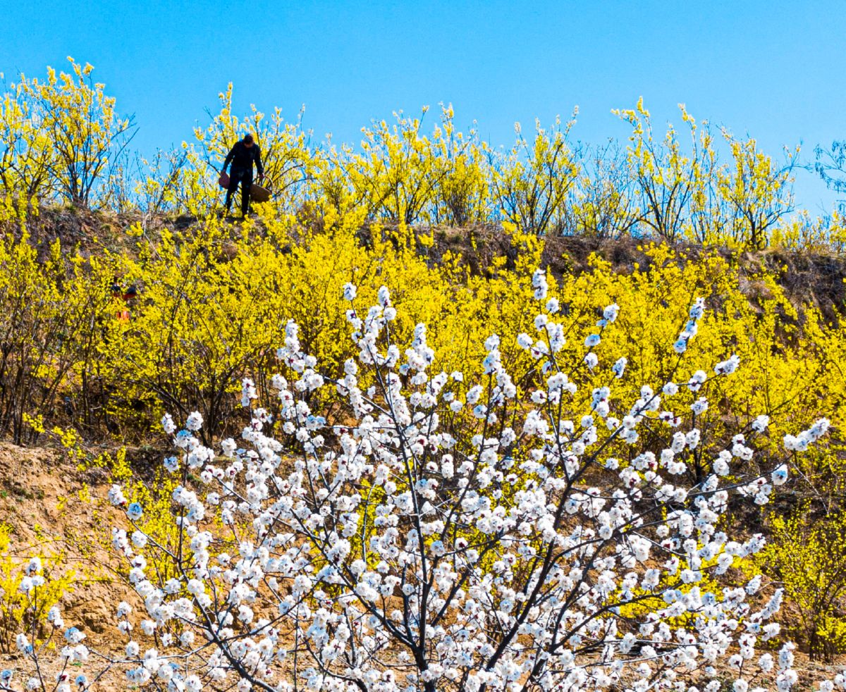 ▲沸泉村漫山遍野的连翘花竞相开放 特约摄影 苗森泉 摄