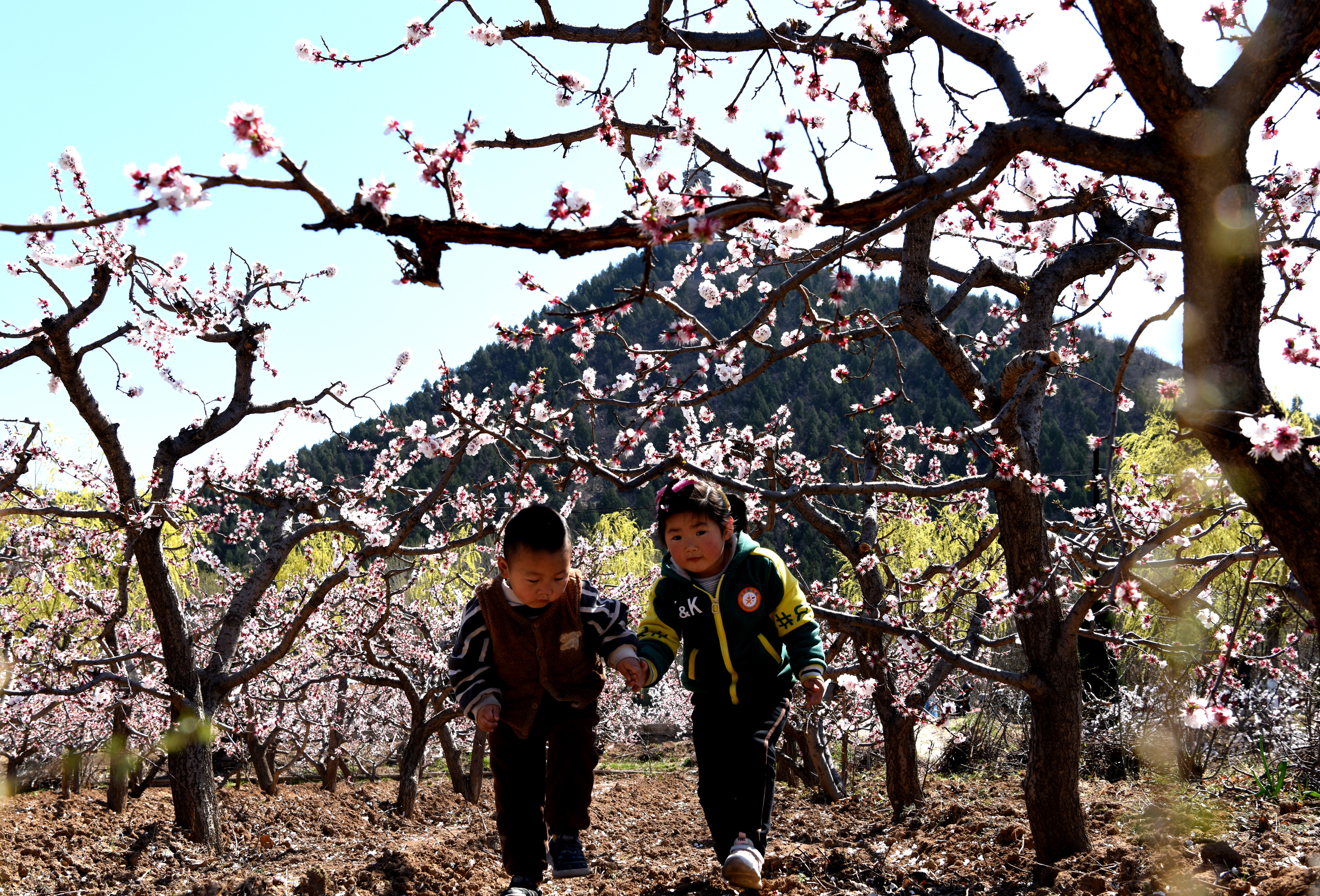 杏花盛开童趣浓 特约摄影 崔松良 摄