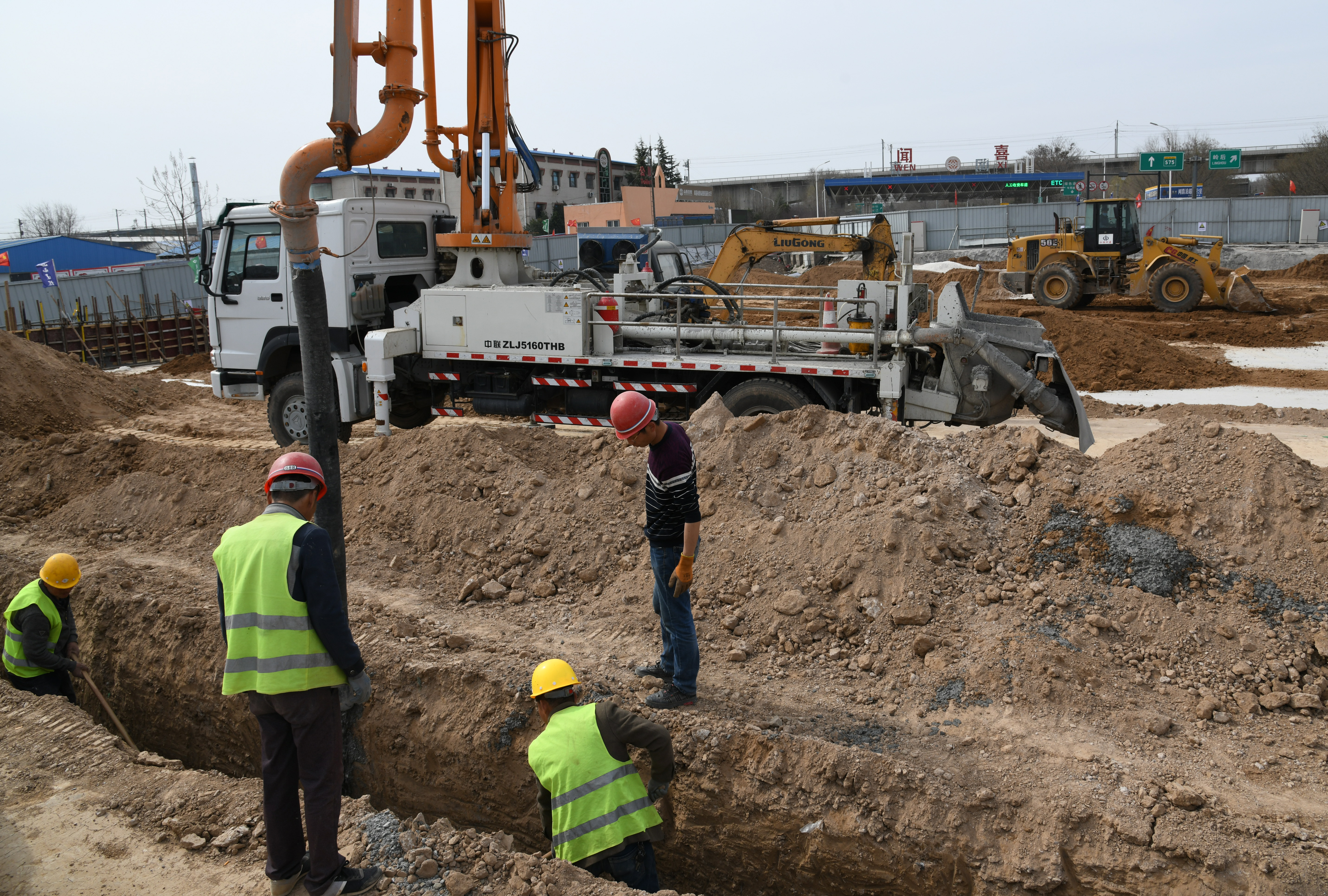 3月18日,施工人员在侯平高速闻喜互通连接线拓宽改造工程施工。