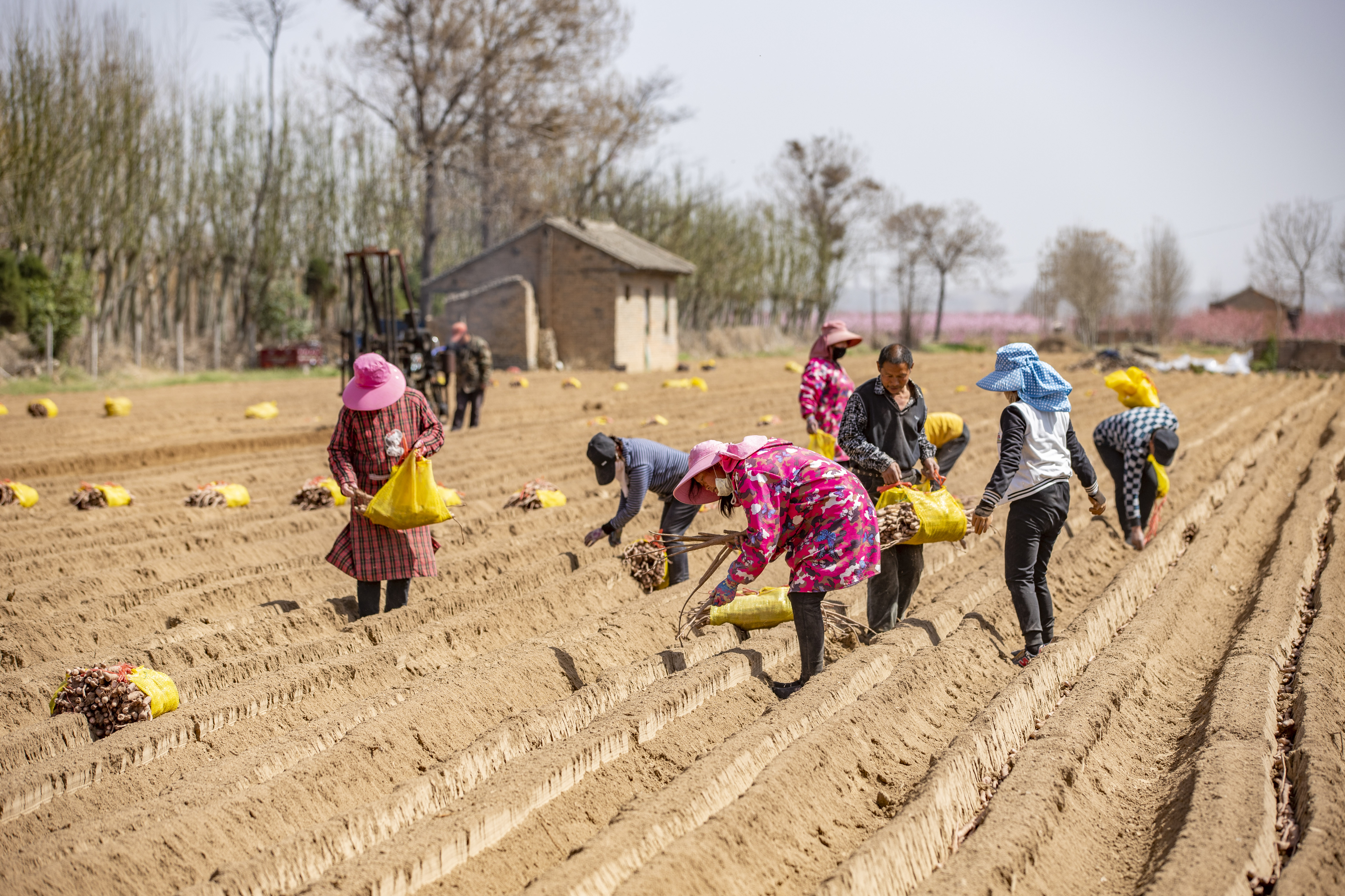 3月19日,永济市蒲州镇花园村村民紧抓农时,在黄河滩涂地种植山药。 该镇紧临黄河有上万亩土层深厚、松沙土壤的黄河滩涂地,非常适合种植山药。多年来,该镇许多村民抓住有利条件大面积种植山药,这些山药因品质好而深受广大消费者喜爱。
