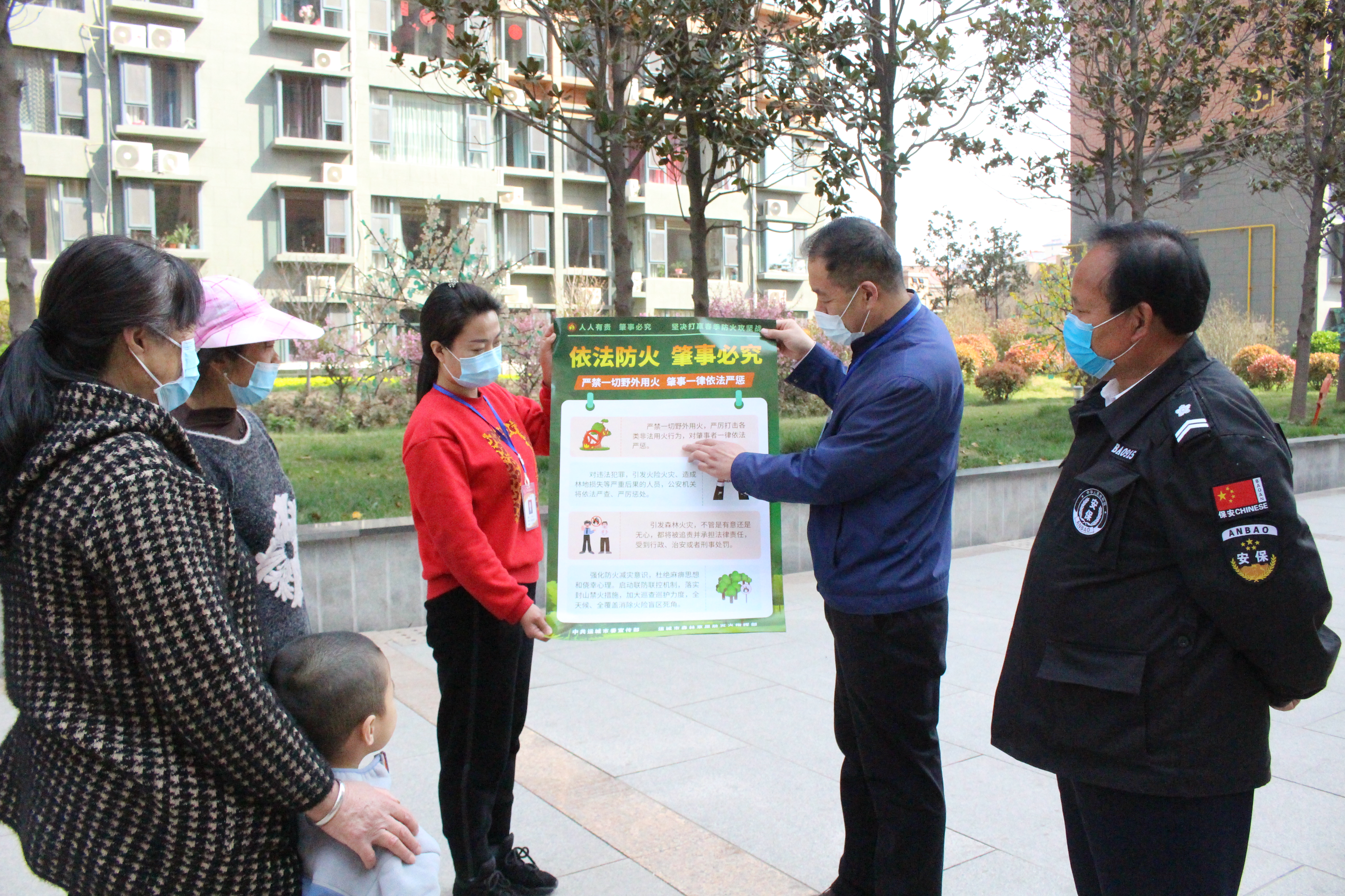 3月24日,闻喜县龙海社区居委会工作人员向辖区居民宣传森林防火等法律法规。 该居委会根据县社区办党委的部署,一手抓疫情防控,一手抓林草防火,通过张贴、发放有关资料等形式,广泛宣传森林消防有关法律,教育居民自觉遵守消防法规,不携带火种进山,不在山林上香烧纸、燃放烟花爆竹,不在林区吸烟、野炊、烧烤食物等,自觉保持防火警惕,强化防火意识,坚决杜绝和避免个人活动中的一切火险火灾隐患。特约摄影 刘佳
