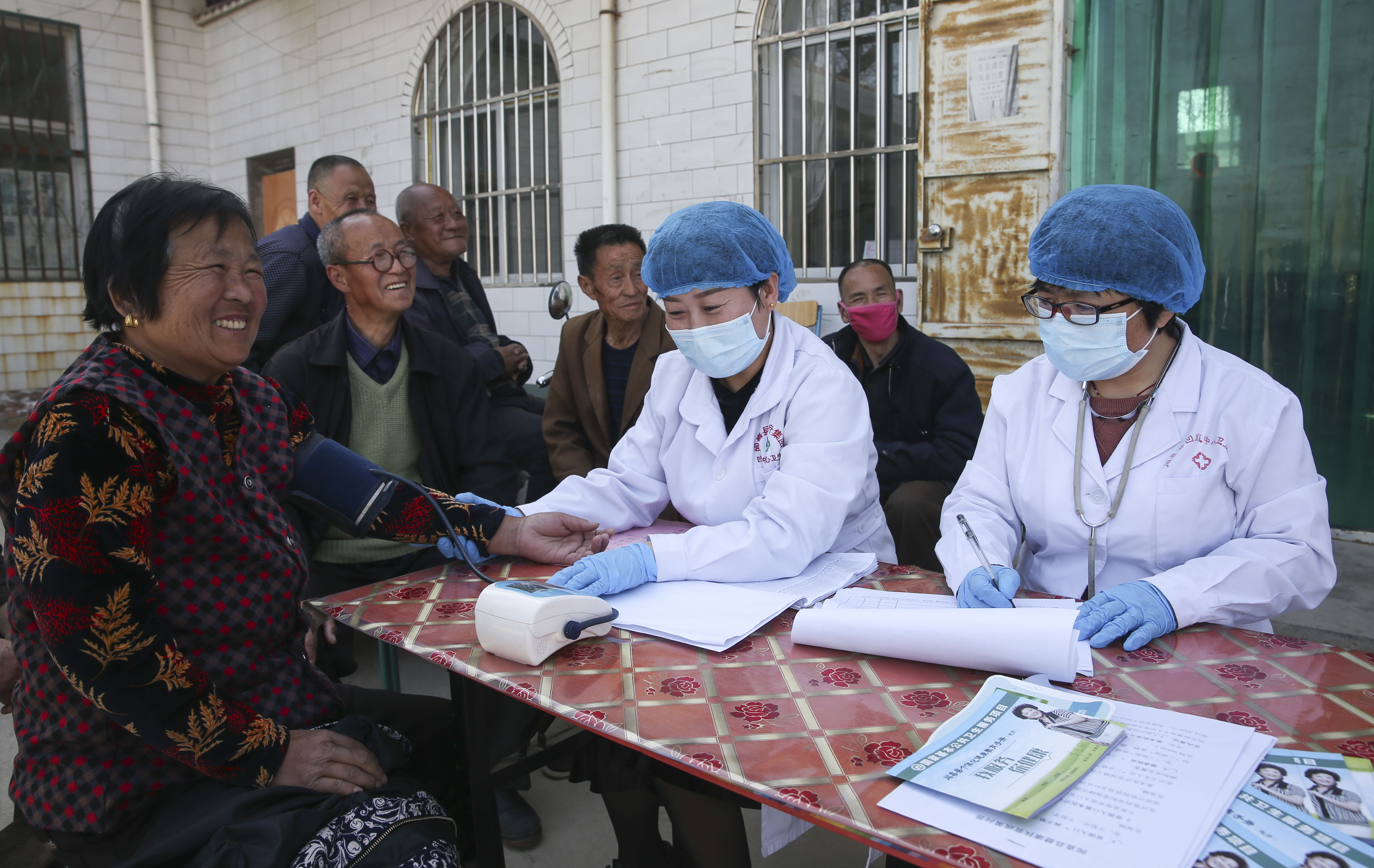 3月20日,闻喜县医疗集团畖底镇中心卫生院组织医护人员来到西雷阳村,为56户健康扶贫“双签约”家庭进行家庭医生履约服务工作。