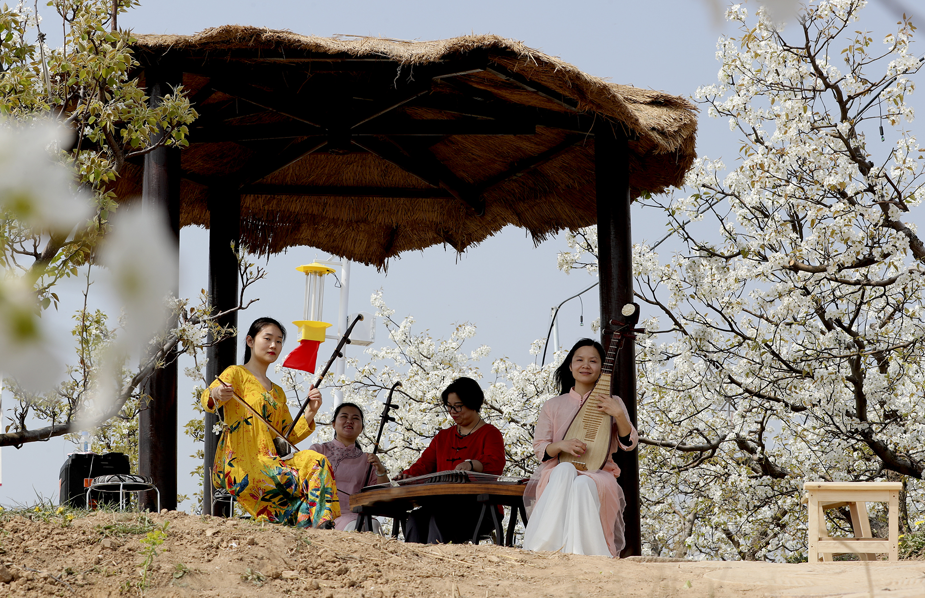 “在现代农业产业园管理工作中,间伐改型是一项重要内容。”王海波介绍,“在百花节现场的梨园,都是近年来通过间伐改型后的精品梨园,以观景台下方的王中社的梨园为例,这样1亩地,梨树现在已经减密到了40株以下。间伐后的梨树树体通风透光,同时便于机械化操作,在减轻了劳动量的同时,产出的酥梨汁多味甜,优质酥梨占比可达90%以上。”
