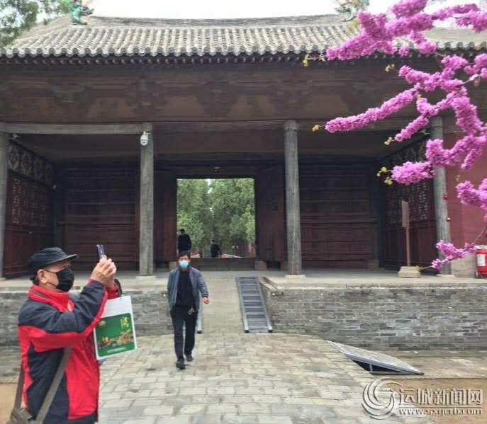 ▲游客在永乐宫景区拍摄盛开的鲜花