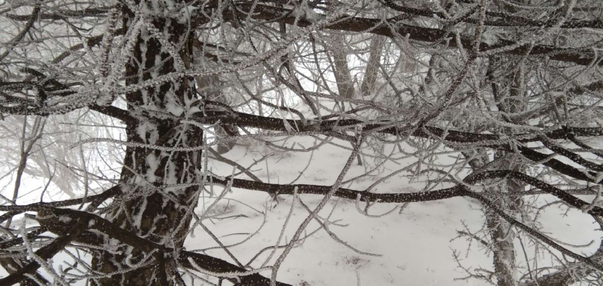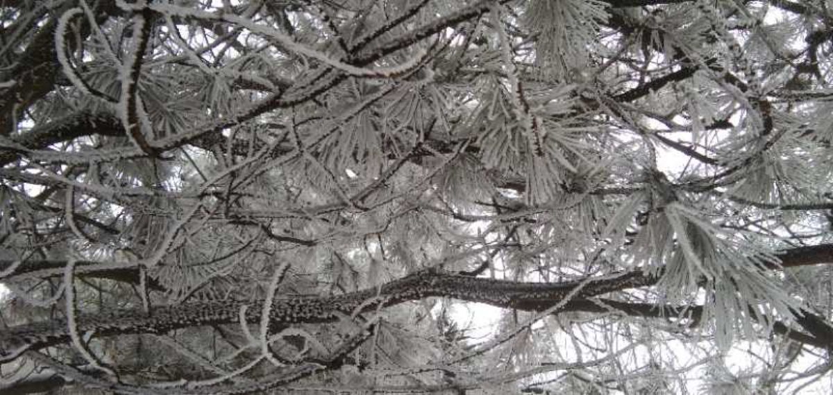 此前一天晚上,一场降雪光临这里。山顶上,雾气蒙蒙,松柏枝头被雪装点后变得分外美丽。 记者 王 斌 通讯员 陈春明
