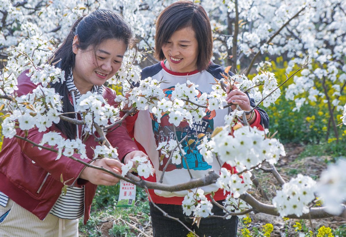 去年,李锡堂牵头联系72名社会爱心人士参与到脱贫帮扶工作中,“认领”贾哲贵的梨树,全程参与梨树的修剪、套袋、灌水和施肥。到金秋时节,“认领”梨树的爱心人士以市场价购买贾哲贵的鲜梨,由于少了中间商赚差价,贾哲贵的3亩梨卖了3万多元,收入比往年增加了60%。今年又到梨花绽放时,李锡堂牵头联系的志愿者又来到贾哲贵的梨园,开启了今年的“认领”梨树献爱心活动。 特约摄影 李克荣