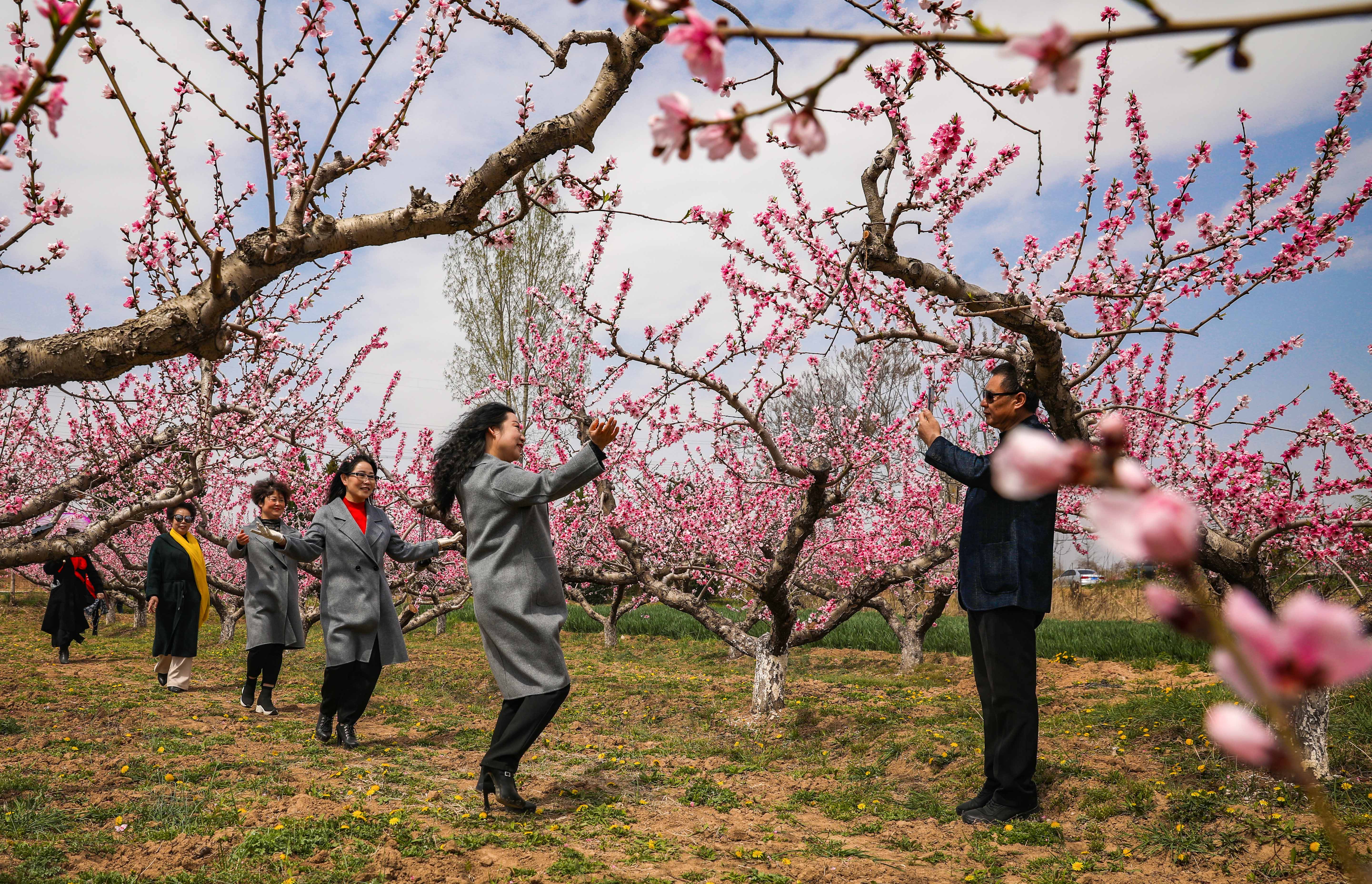 美哉桃乡笑春风 本报记者 金玉敏 摄