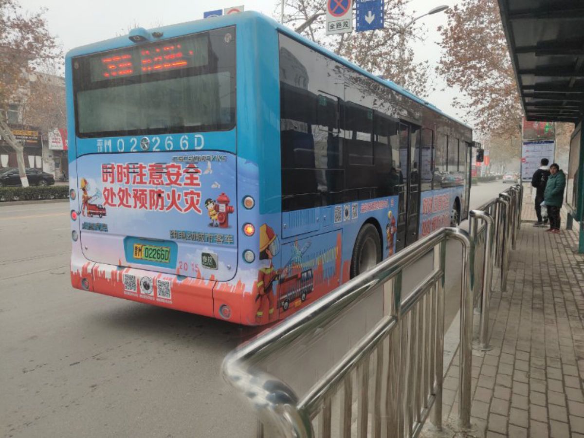 公交车身印制了“时时注意安全,处处预防火灾”“消防安全不放松,家庭幸福乐融融”等通俗易懂、贴近生活的车身消防公益广告,让市民在等待和乘坐公交车的同时,将消防安全意识植入脑海。