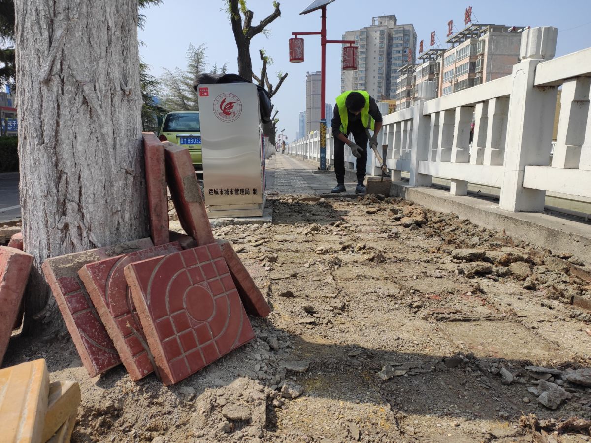 运城晚报讯(记者 祁克宁)3月30日,在市区禹都大道姚暹渠旁,市政设施维护队组织人员,对姚暹渠的人行道进行修缮。