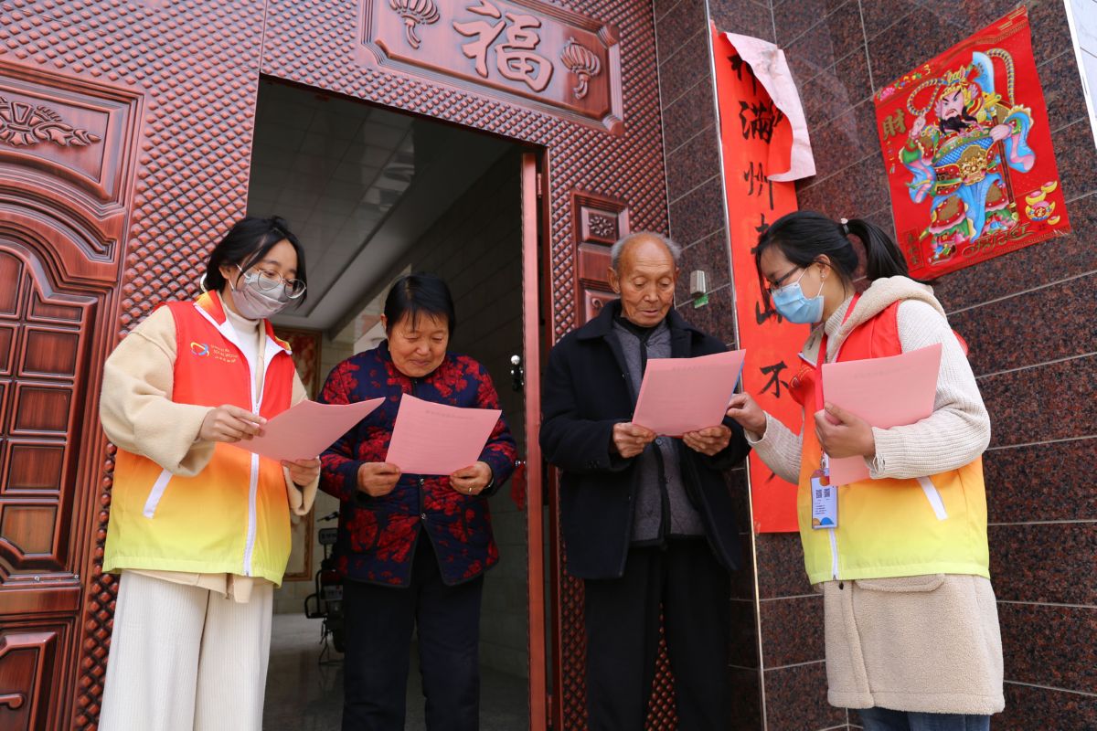 3月31日,夏县彩虹社工在瑶峰镇上留村,给群众宣传禁毒知识。