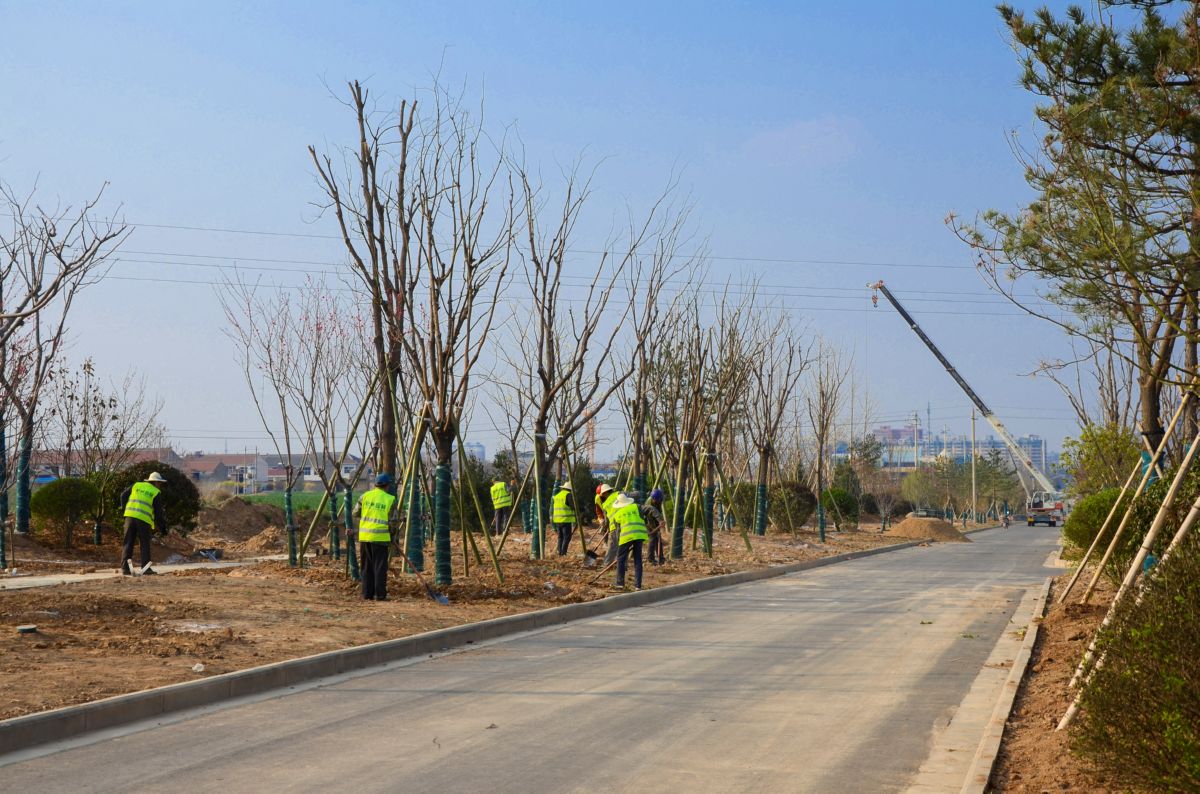 ▲3月29日,园林工人在万荣县新开南路打造街边景观林。