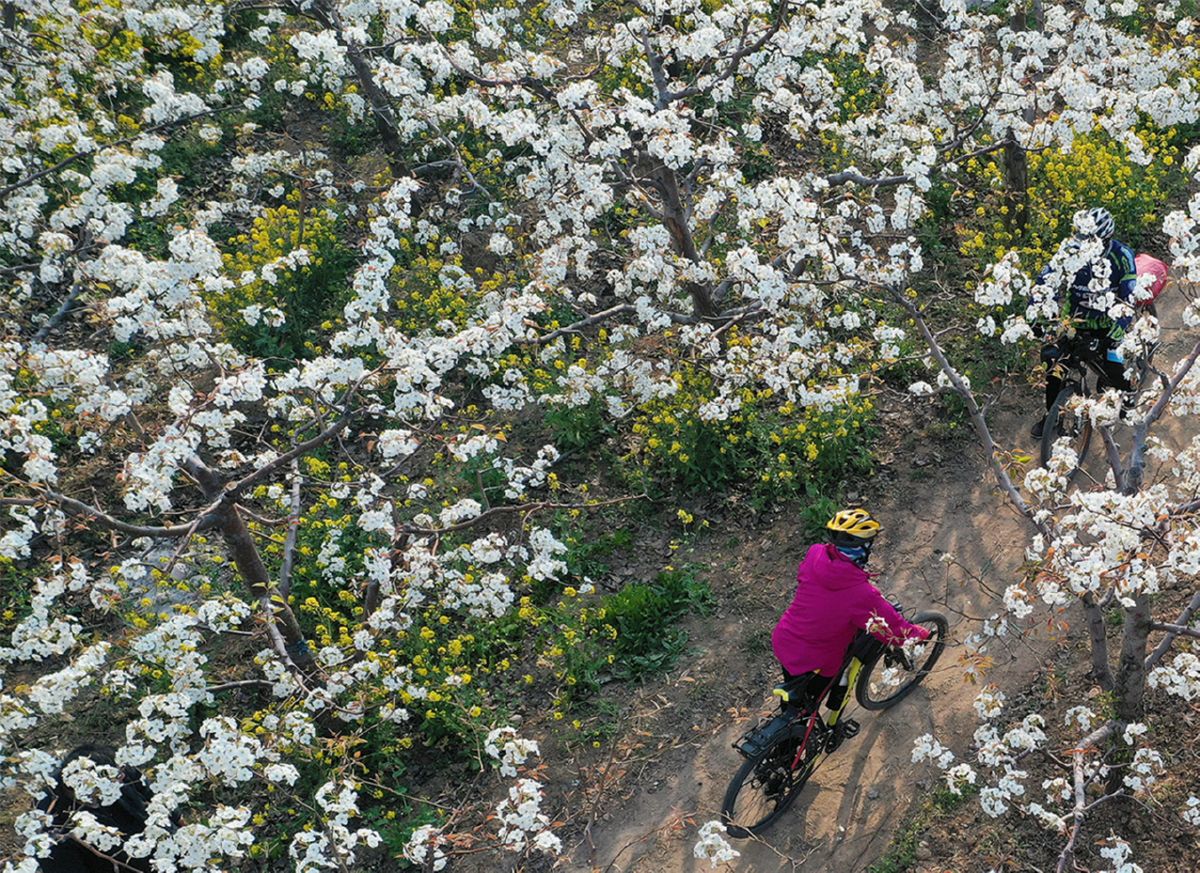 在经过农田的道路两侧,随处可见向外延伸出的一块场地,而一旁的农田里,桃花朵朵开。“等到果熟时,村民就可以在这里销售农田里种植的农产品了。”南建龙说,专门设立的土特产品购销点,为20余万亩粮食种植、水产养殖、蔬果栽植以及农副产品加工等产业发展提供服务,推动着芮城经济高质量发展。