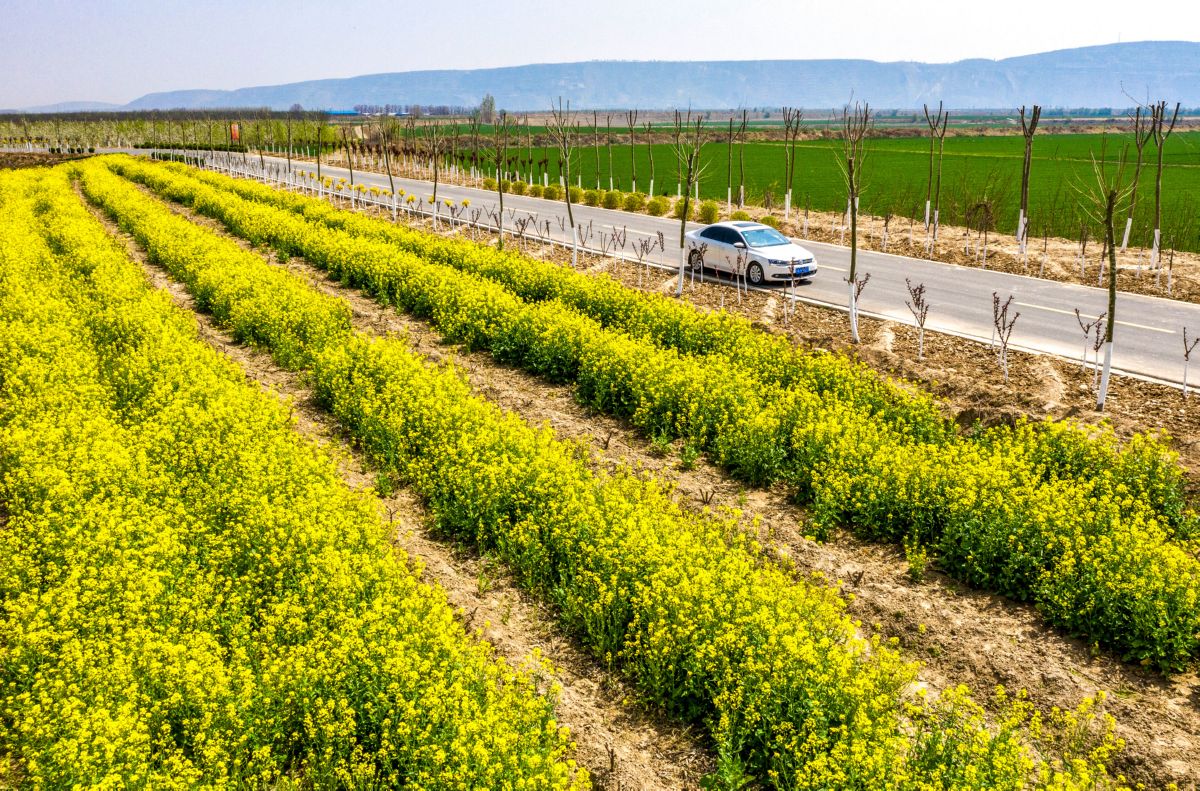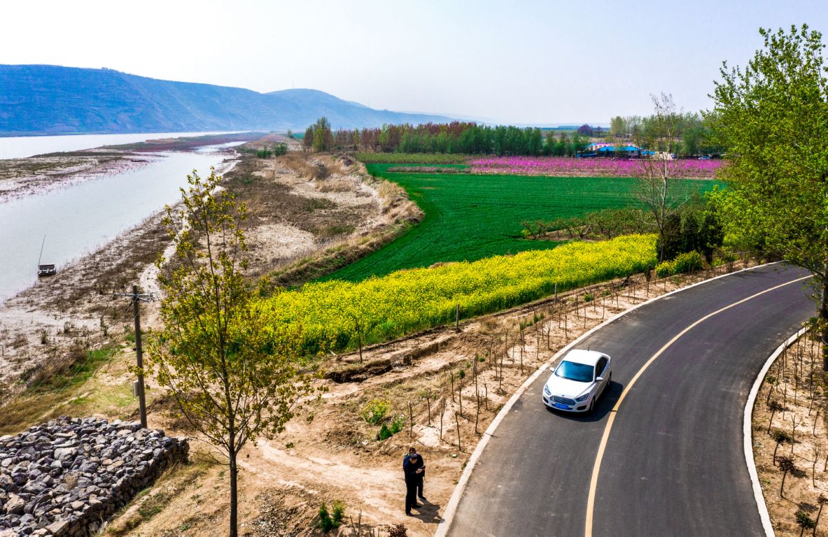 阳春三月,花开成海。顺着黄河流动的方向,驱车行驶在已经建成通车的路段,农田里粉红的桃花盛开枝头,路旁成片的油菜花开得正旺,真可谓一步一景春涌动。