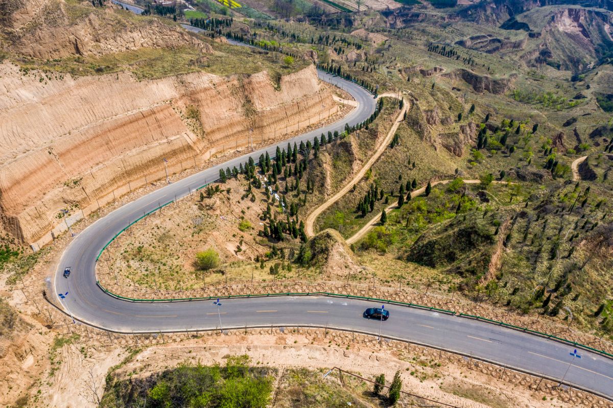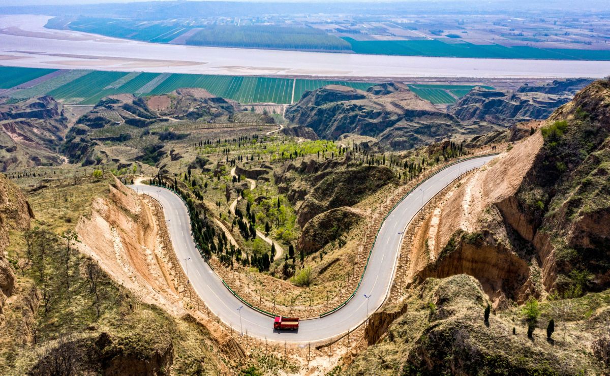 一条绵延在大河岸畔的黄河一号旅游公路,翻越崇山峻岭、连接旱塬沟壑、穿越平原湿地,宛如一条巨龙向前延伸着。