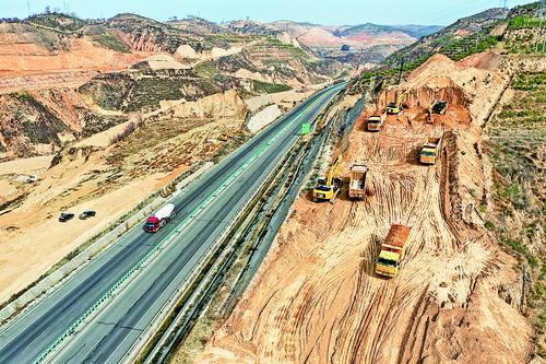 ▶4月1日,中铁八局集团第三工程有限公司工人在兴县东枢纽路基工地施工(无人机照片)。 近日,在做好新冠肺炎疫情防控的前提下,由中铁八局集团第三工程有限公司承建的山西静兴高速公路建设项目全面复工。山西静兴高速公路起点位于忻州市静乐县丰润镇,终点位于吕梁市兴县高家村镇,建设里程93.86公里,设计时速为80公里/小时。 新华社发