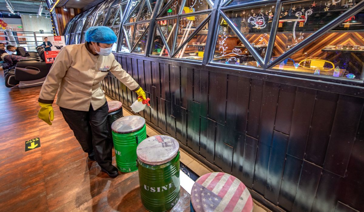 3月29日,记者走访市区华曦广场看到,临近中午,这家商场陆续迎来了不少客人。每位顾客进场前都要进行体温测量、手部消毒,还要登记相关信息。餐饮店对客人的就餐距离、就餐人数,也都进行了严格控制和安排。