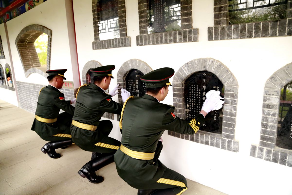 随后,大家来到烈士墓碑亭,擦拭烈士墓碑,摆放菊花,以寄哀思,缅怀先烈。