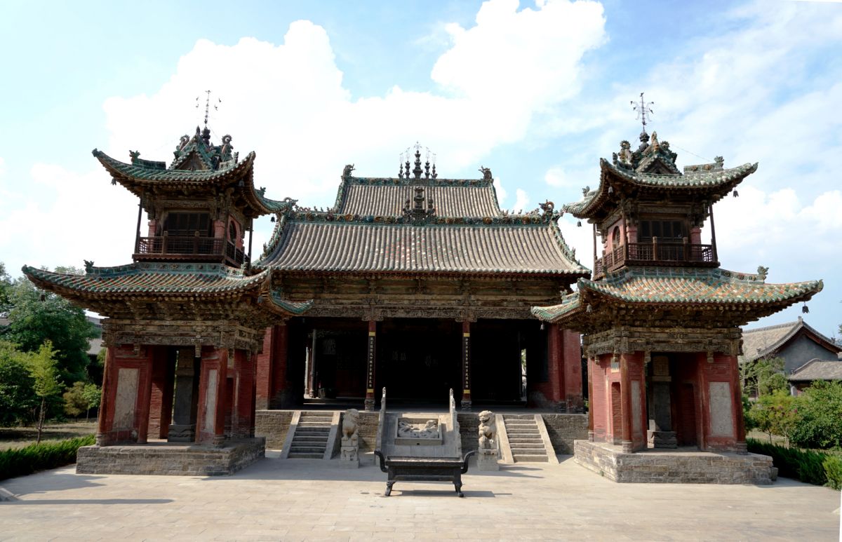 稷山县稷王庙献殿与钟鼓楼,献殿之北为后稷楼。