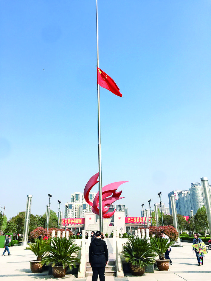 运城晚报讯(记者 景斌)国旗半垂,举国同悲。4月4日,为深切悼念抗击新冠肺炎疫情斗争牺牲烈士和逝世同胞,市区南风广场下半旗志哀。