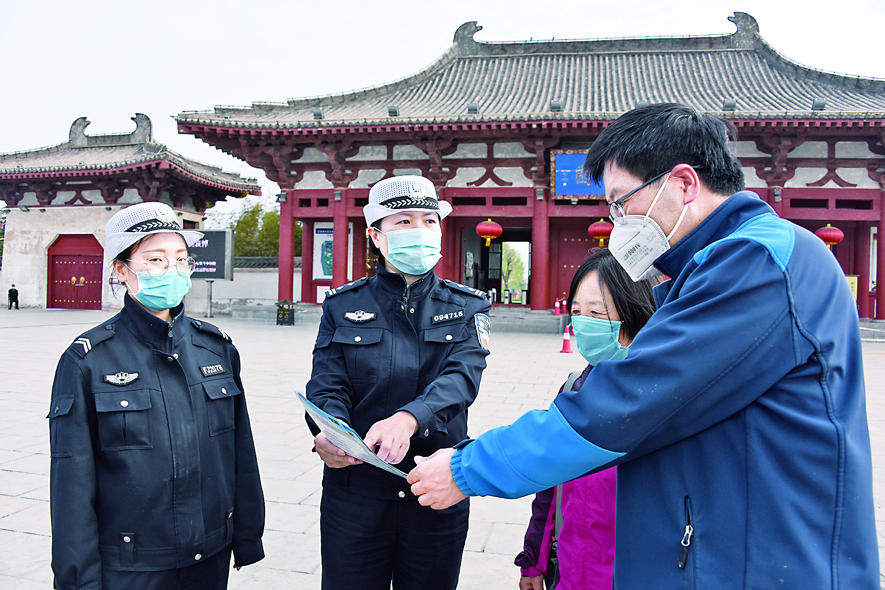 此外,针对辖区景点多,清明节假期为旅游高峰期的特性,永济交警大队民警来到辖区鹳雀楼、蒲津渡遗址等景区,向前来旅游的游客讲解交通安全知识。
