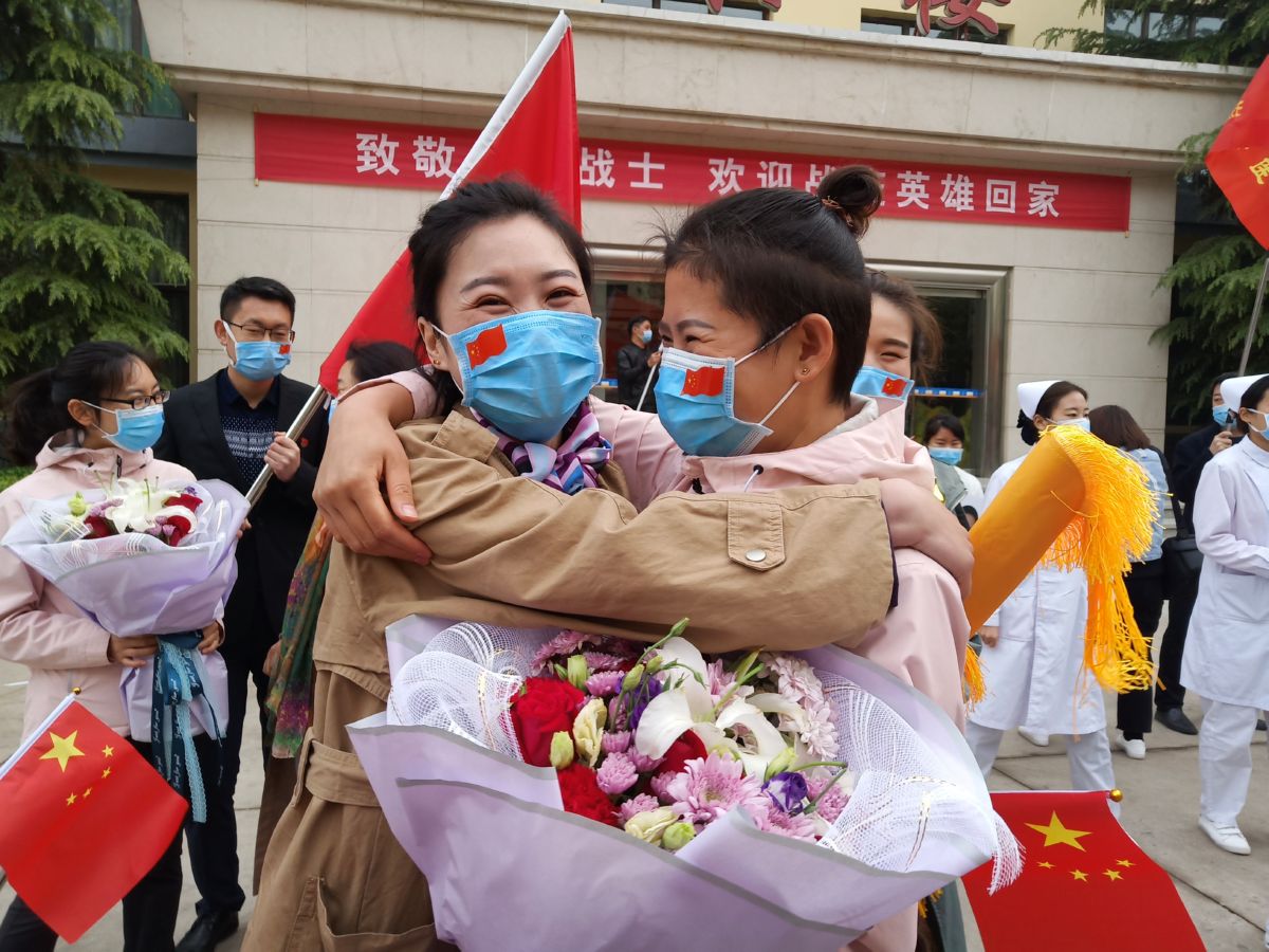 当日上午,在迎接英雄回家的现场,9名队员用自创的诗朗诵《我不怕》和一首歌曲《阳光总在风雨后》表达他们的心情,用真诚打动了在场的所有人。返家之际,队员们互相拥抱、合影留念。队员们表示,离家两个月了,很挂念奋战在工作一线的同事们,希望尽快回到工作岗位,在群众最需要的地方继续为百姓健康服好务、继续奉献。
