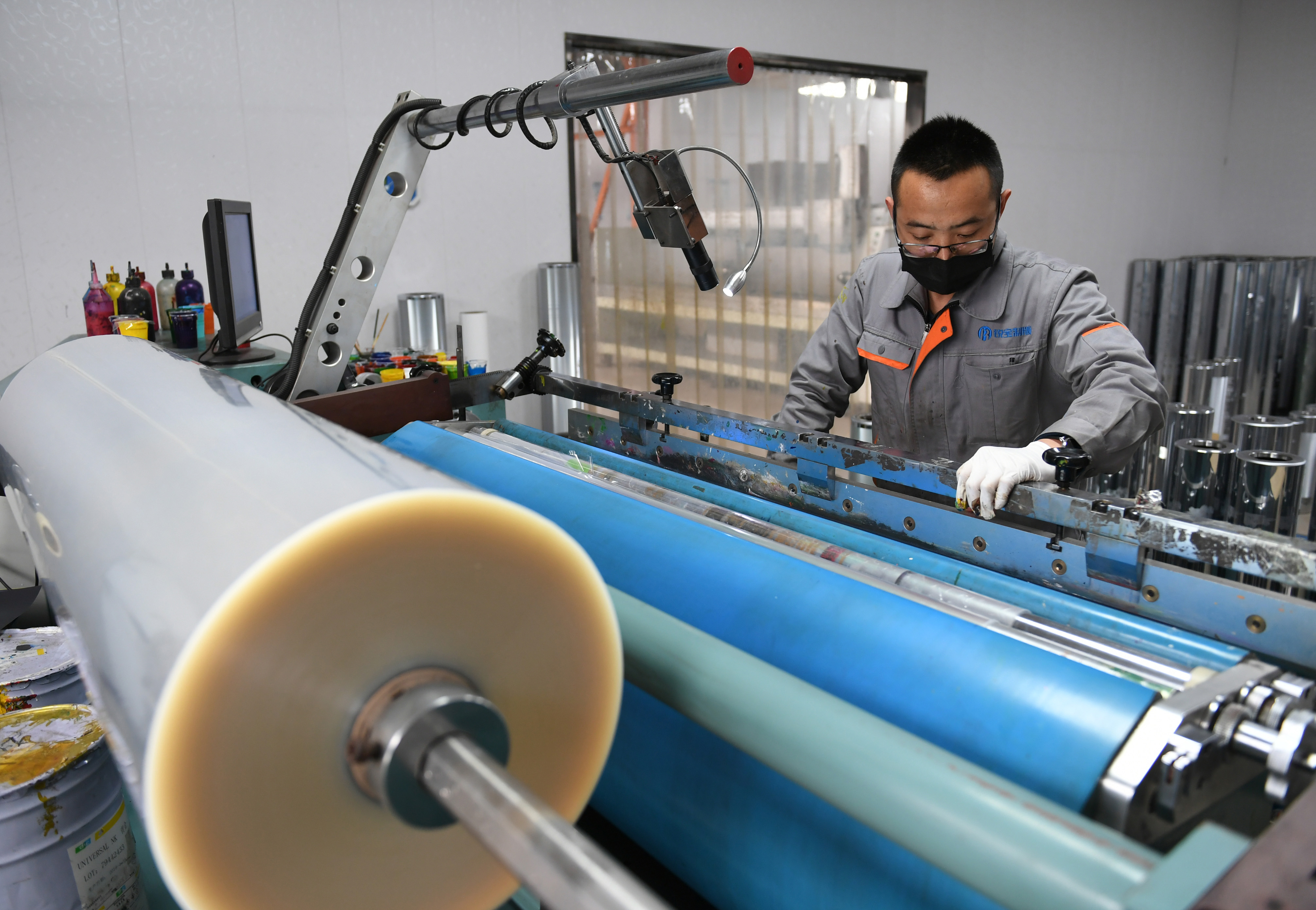 运城锐宝制版有限公司工人在检验雕刻版辊 特约摄影 栗卢建 摄
