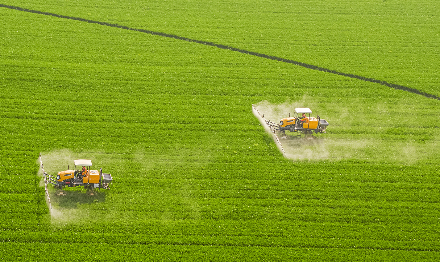 4月13日,在永济虞乡农场三分厂,技术人员赶时节抓春管,操作自助打药机在给麦田喷洒农药、施页面肥,确保今年粮食增产丰收。 特约摄影 吕向前 摄