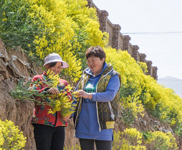 近年来,当地村民把村头小块地和院墙外的土崖都种满了板蓝花。这样既可以美化农村环境,又能靠收获板蓝籽增收。 特约摄影 李克荣