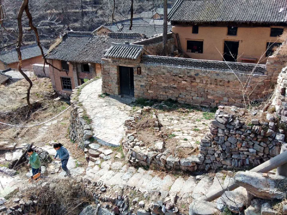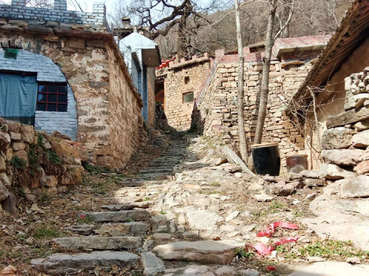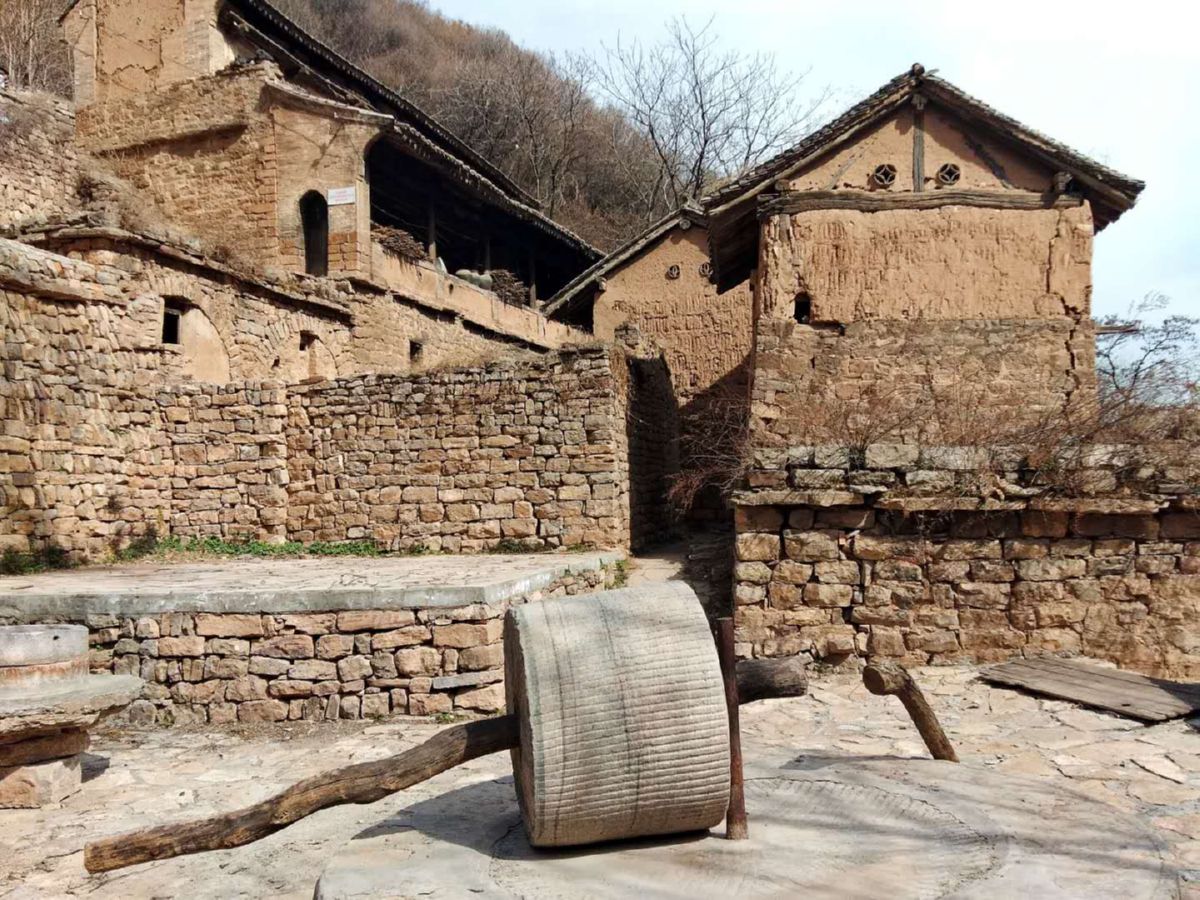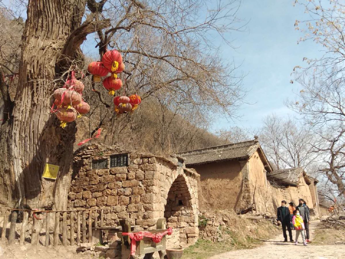 这个村三面环山,房屋呈阶梯式分布,满眼皆是或高或矮林立的树木,它们大都嫩芽刚吐,绽放的山花点缀其间,很容易让人想象出夏季时的幽静和凉爽。石板铺路,石块垒墙,穿行古村,你会时不时看到石碾石磙、犁耧耙耱、扇车推板等传统农具。石砌的房屋窑洞几乎遍布全村,石磨石槽随处可见,原始的农耕方式还在这里进行,种种景象会让你的心头涌起浓浓的乡愁。