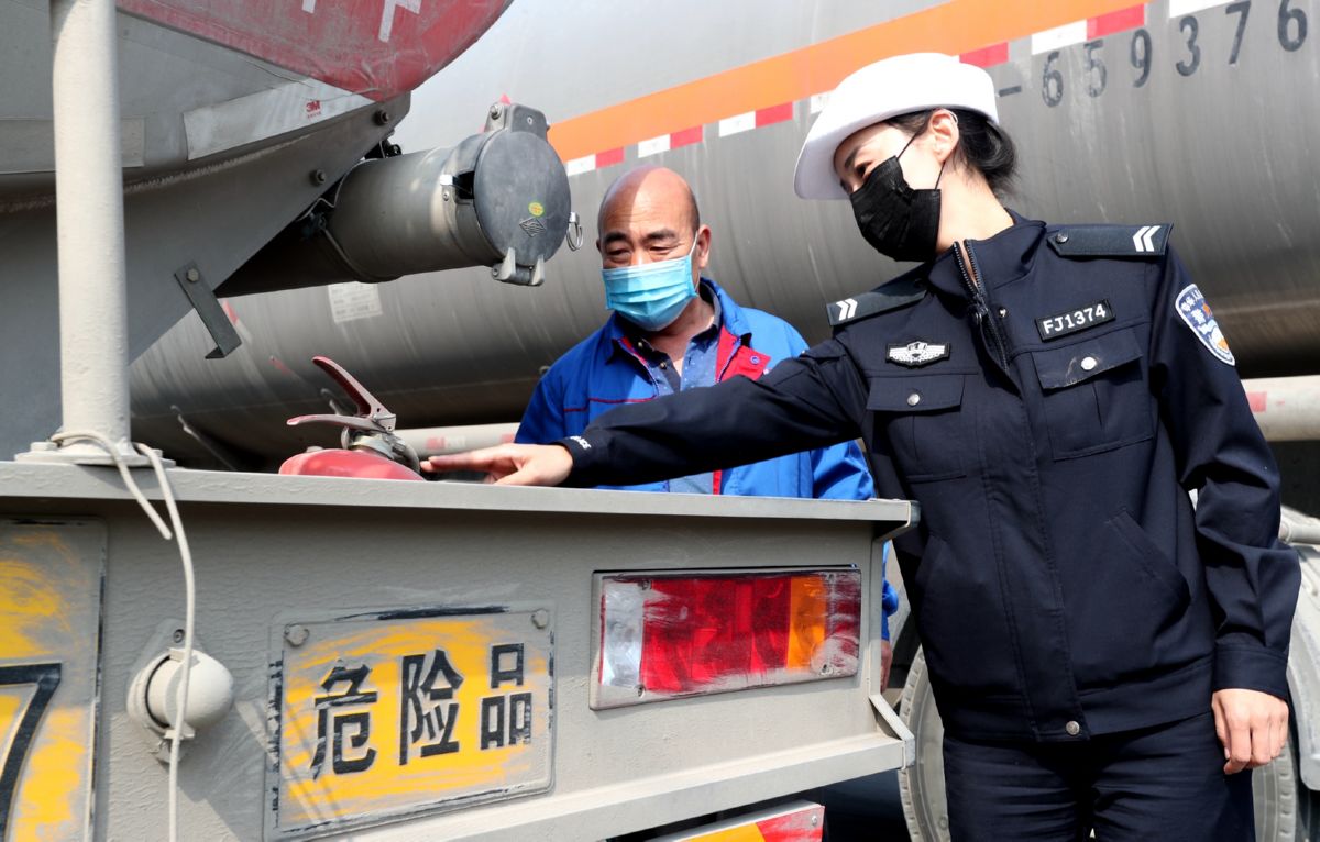活动中,宣传民警在河东石化运输有限公司,向企业负责人和部分危化品车辆驾驶人,发放了宣传挂图和宣传单,并围绕交通安全法规、危险化学品道路运输安全常识、危险化学品道路运输事故处置和救援知识等内容开展了安全教育。同时,民警将印有“系好安全带”的即时贴,张贴在危化品运输车辆上,并对车辆的灭火器、故障警告牌等安全设施进行了检查。 特约摄影 葛崇收