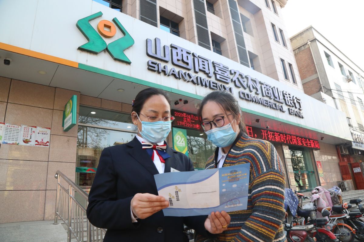 ▲近日,闻喜农商银行工作人员向群众讲解国家安全教育知识。