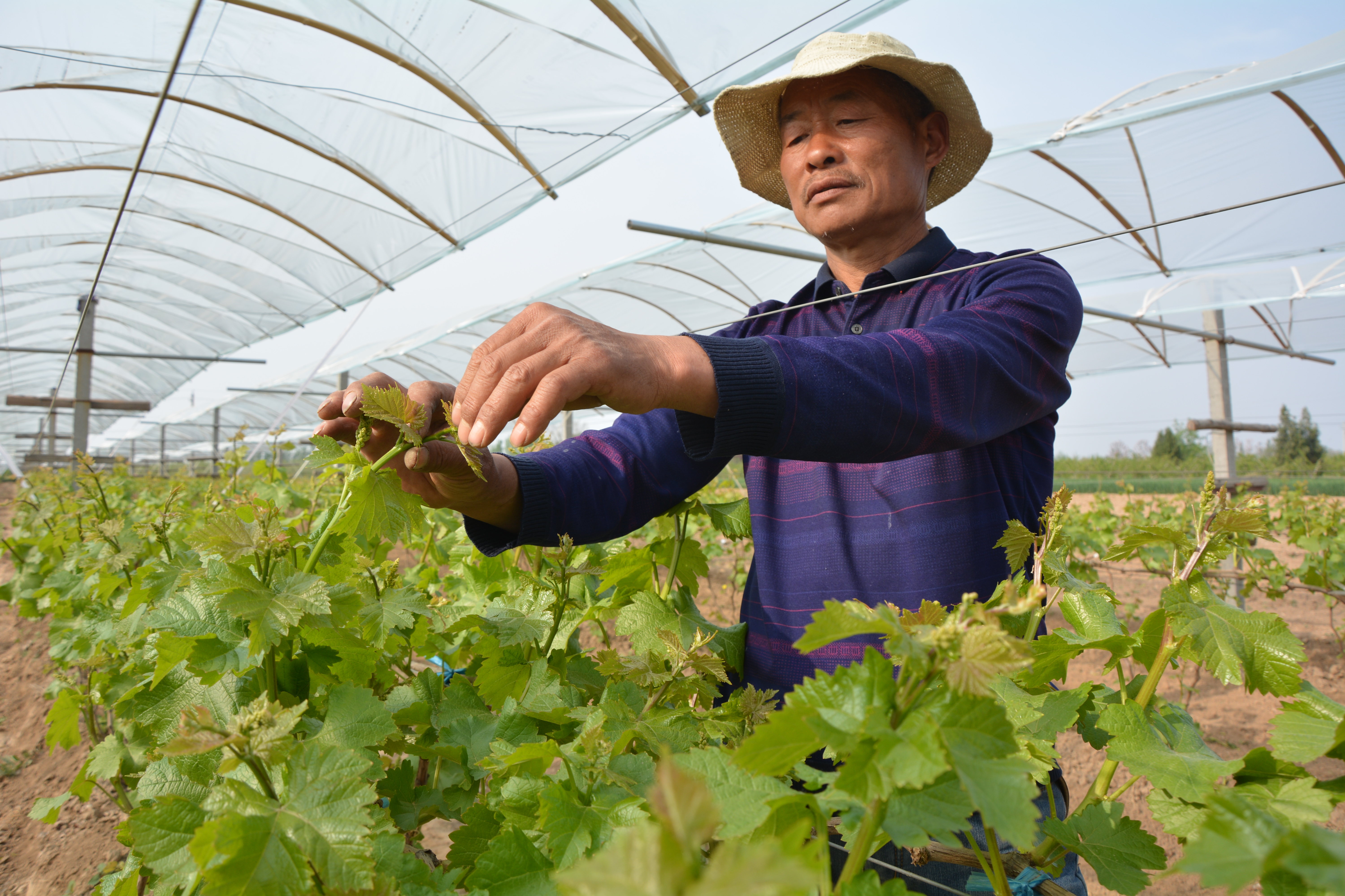 4月15日,临猗县楚侯乡张嵩村果农在给葡萄树剥芽。 眼下正值各种果树生长的关键时节,加强管理刻不容缓。广大果农不误农时,抓紧春管黄金时间,辛勤劳作,期盼有个好收成。 特约摄影