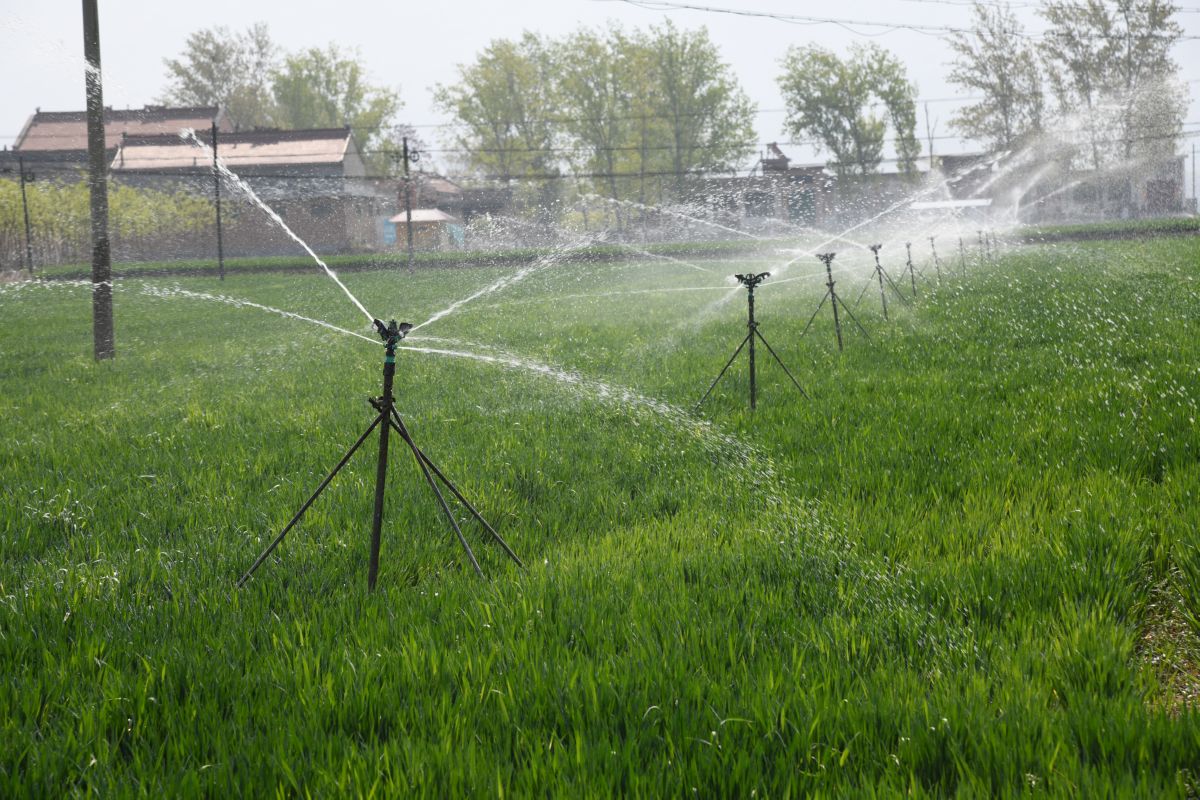 4月17日,闻喜县河底镇阳社村村民在用喷灌浇灌小麦。 近年来,闻喜县河底镇积极推进小型农田水利建设,先后在小寺头、阳社等村实施农田半固定喷灌、滴灌工程,发展高效节水灌溉农业,实现了由传统灌溉习惯向现代灌溉方式转变,由粗放型农业向现代节水高效农业转变。 特约摄影 温徐旺