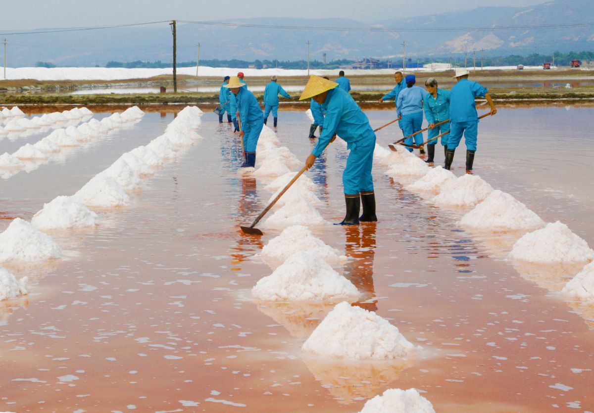 盐化职工在盐池中进行非物质文化遗产——五步产盐法工艺展示 穗沛哲 摄