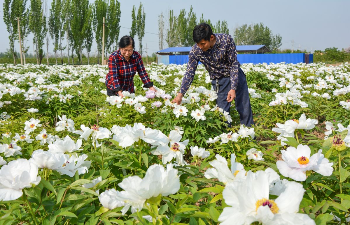 4年前,王安武投资两万余元,从山东购买牡丹苗木,将自家15亩耕地全部栽成牡丹。根据今年开花情况,他家牡丹园预计可收入12万元。 特约摄影 徐应杰 摄