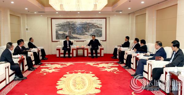 丁小强与中国建设银行山西分行党委书记、行长江文波一行座谈 记者 雷哲侠 摄