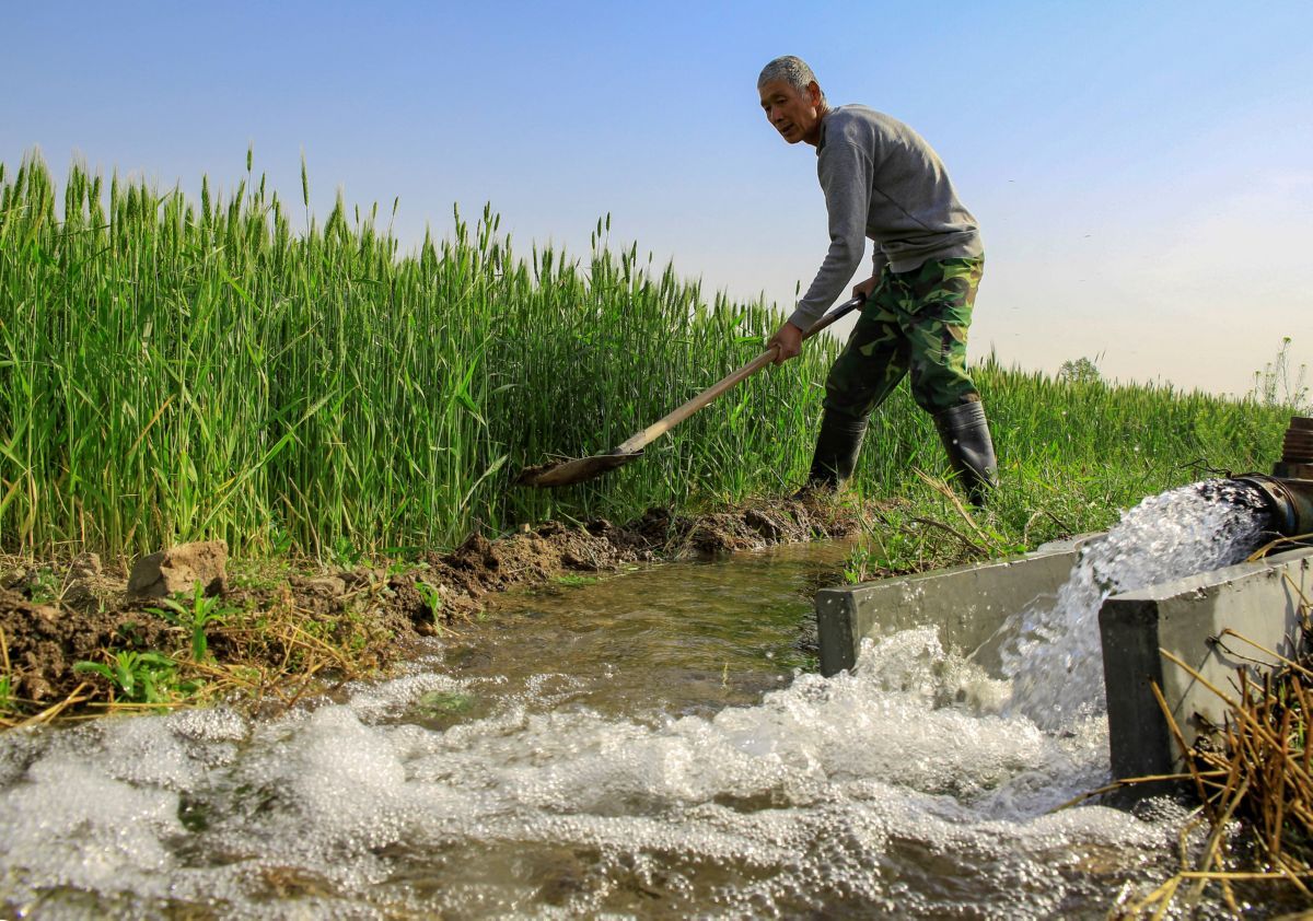 谷雨时节,当地农民朋友抓住谷雨前后小麦抽穗扬花的最佳时期实施浇灌,确保小麦丰产丰收。 特约摄影 姜 桦 摄