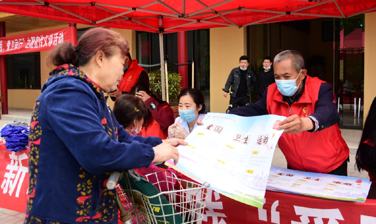 该市东丰社区、杏南社区、杏北社区党支部、居委会与永济市文明志愿者协会,联合组织开展“防疫有我,爱卫同行”宣传活动。身着红马甲的志愿者有的为居民发放宣传画,讲解疫情防控知识,有的积极协助居民量血压、测体温等。