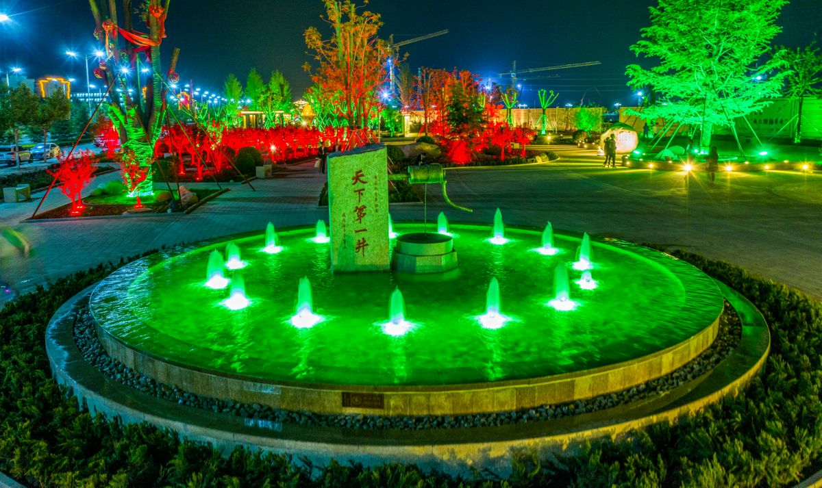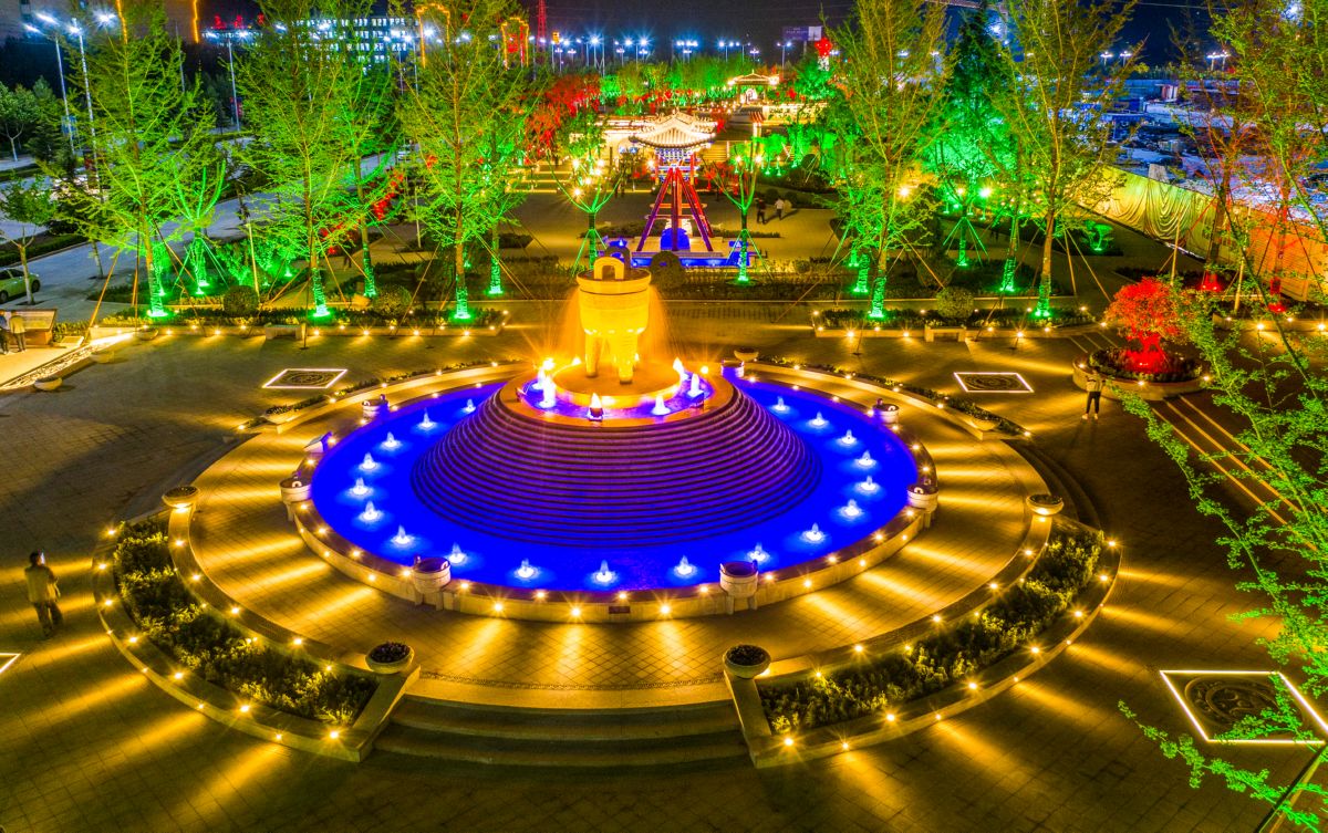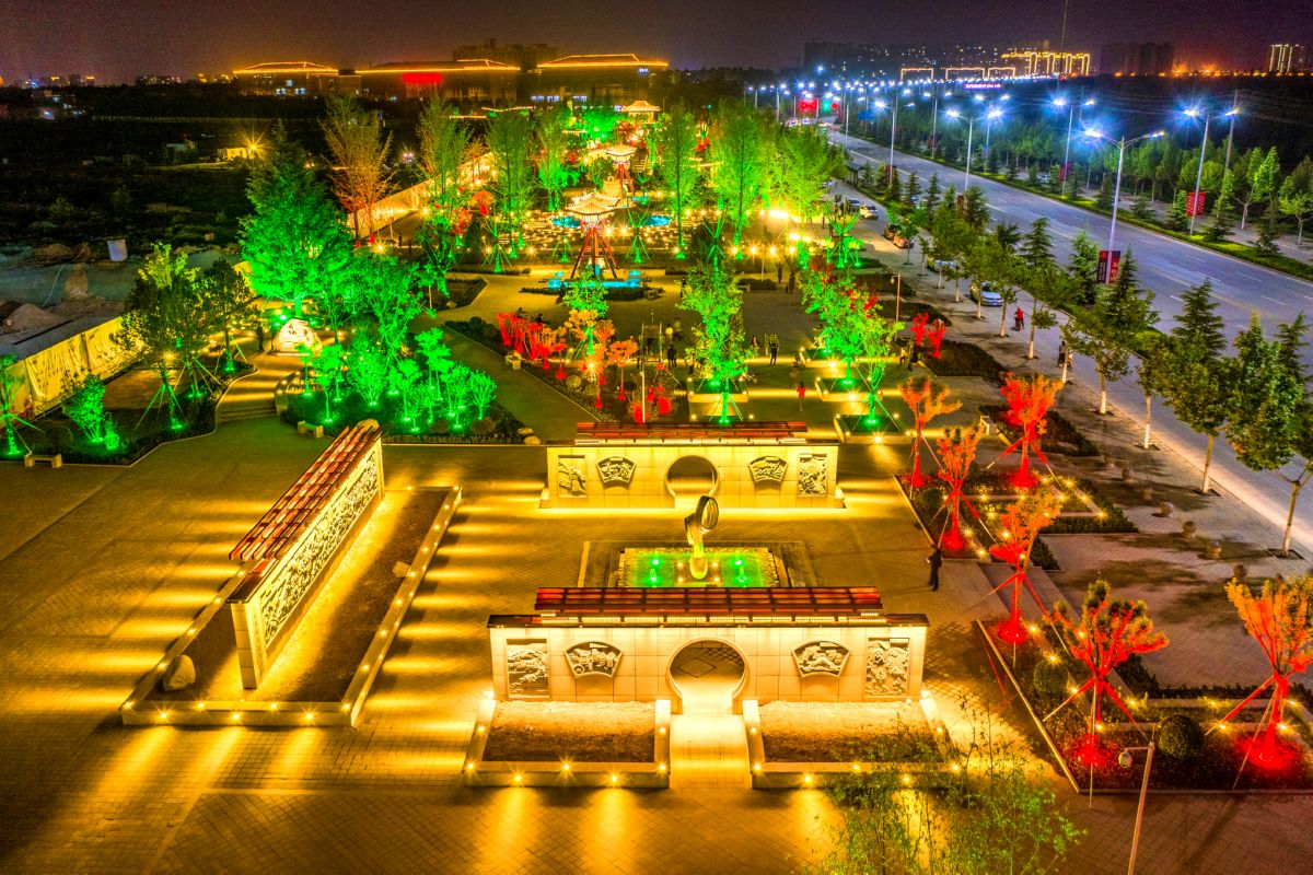 ▲4月28日拍摄的华夏之都文化公园夜景。