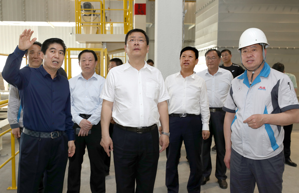 丁小强在大运新能源有限公司冲压和焊装车间调研项目建设进展情况。 记者 雷哲侠 摄